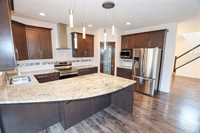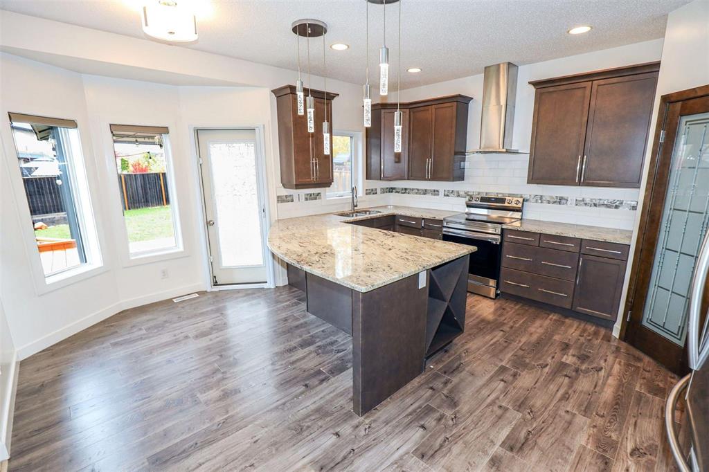 Showings start Saturday November 1st , Offers Monday November 10th. Open house Saturday Nov 1 3:00 pm-4:30pm and Nov 2nd Sunday 4:00-6:00pm . 2213 sf gorgeous two storey. New carpet 2025 ! New fresh paint 2025! Fantastic kitchen with extra large granite island, pendant lighting, neo angle pantry, stainless steel appliances & vented hood fan open to fabulous family room with gas fireplace & built-in entertainment unit surround sound & 9ft ceilings perfect area for relaxing with friends & family. Dining room, guest bath & laundry complete the main floor. Spacious master bedroom with deluxe en suite & wicc. Finished basement with rec room, 4th bedroom, 4th beautiful bath & storage. Engineered floor joists, HRV, central vac & air. Huge fenced pie lot with custom deck & firepit. Magnificent! Come & see