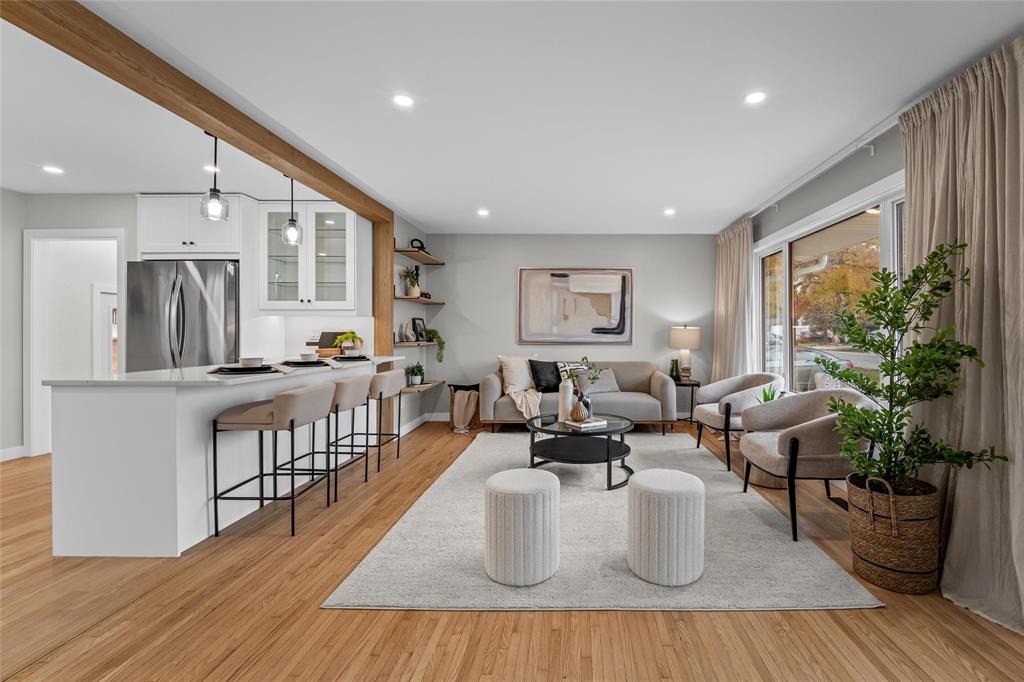 Beautifully renovated 946 sq ft bung! 3 bed, 2 bath, all work done with permits – not a flip. Quartz kitchen, refinished hardwoods, updated bath w/heated tile. Newer furnace, A/C (2024), windows, deck & fenced yard. Move-in ready!
