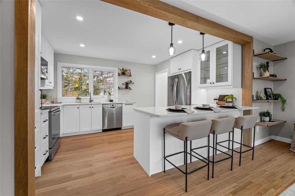 Showings Start Mon. Nov. 3rd, Open House Sun. Nov. 9th 1-3pm, Offers Mon. Nov. 10th at 6pm. Welcome to 884 Laxdal Rd, a beautifully updated 946 sq ft bungalow where quality meets comfort. Featuring 3 bedrooms, 2 full bathrooms, and a fully finished basement, this home has been meticulously renovated from top to bottom with all work done under proper permits — and it’s not a flip! Inside, enjoy refinished hardwood floors, a modern kitchen with high end cabinetry and quartz countertops & an updated bath with heated tile flooring and tile tub surround. The lower level offers a huge rec. room with so much functionality and lots of storage space. Mechanical upgrades include a newer high-efficient furnace (2024), 60-gallon hot water tank (2024), 200 amp electrical service, and central air (2024). Outside, you’ll find newer shingles (2025), tri-pane PVC windows, a single detached garage, newer deck, large shed, and a fully fenced yard with raised garden boxes and a fenced-in garden area to keep animals from feasting on your food. With only steps from the Harte Trail to enjoy walking or running, this location in Charleswood won't be beat, just move in and enjoy! Call to book your private showing today!