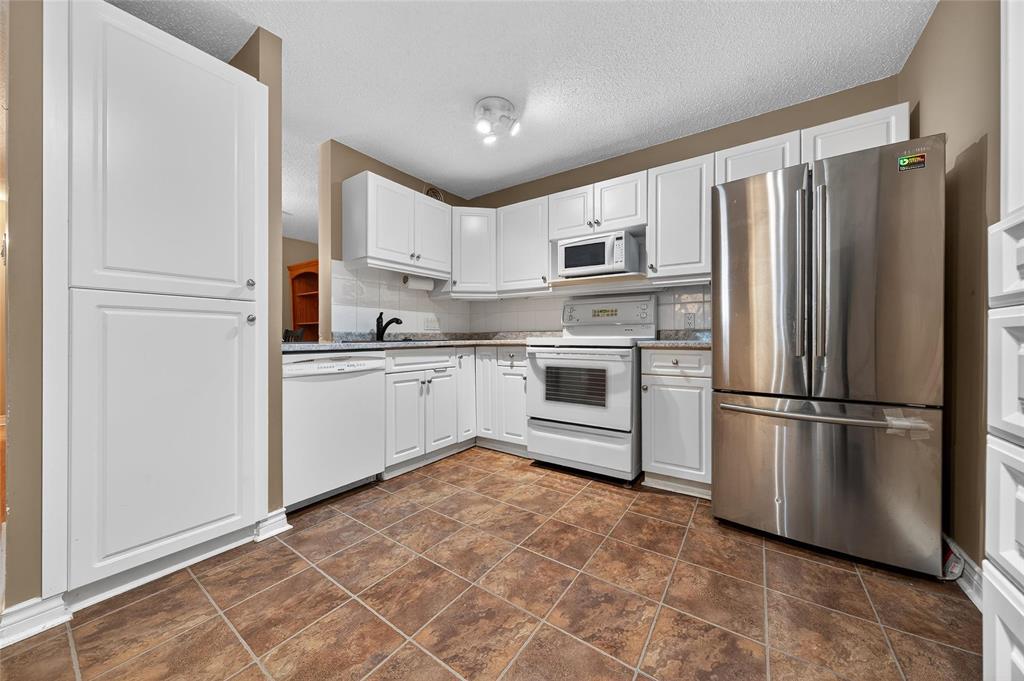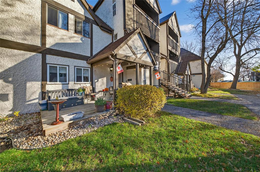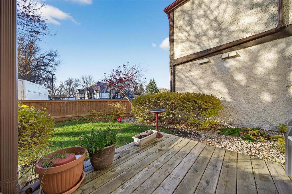 Showings start now with offers November 12th. Rarely available main floor 2-bedroom, 2-bath unit featuring a private south-facing yard space. Step into a spacious living room leading to a beautifully updated kitchen with built-in pantry and a large dining area perfect for hosting family gatherings. The oversized primary bedroom offers double closets, a 2-piece ensuite, in-suite laundry, and a walk-in closet, while the additional bedroom and 4-piece bath provide ample space for guests or family. Enjoy your morning coffee on the deck overlooking the yard that makes this unit truly unique to the community. Conveniently located across from the pool and garden, you can easily enjoy all the amenities this desirable complex has to offer.
