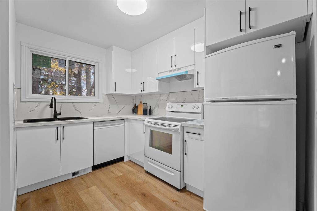 SS Now|Offers as Received. Welcome to this STUNNING, MOVE-IN-READY bungalow in St.Norbert that's been fully updated from top to bottom, offering about 1400 sqft of total living space. The main floor offers an open-concept living, dining, and kitchen area with new laminate flooring, pot lighting, and modern fixtures, along with a entertainment wall and electric fireplace (2025). The remodeled kitchen boasts soft-close cabinets, new countertops, dual-bowl sink with pull-down faucet, exhaust hood fan, and dishwasher (2025), while the bathroom has a new vanity, sink, faucet, and shower finishes (2025). Fresh paint, new doors, trims, baseboards & handles complete the main floor (2025). The fully finished lower level includes a spacious rec room, office or study room, with updated modern lighting, carpet, fresh paint (2025), and utility room with a new Barn Door. Additional 2025 updates include BRAND NEW triple-pane windows with 25-year warranty, front door lock, full exterior paint, plumbing, landscaping, professionally cleaned gutters, and hot water tank replaced in 2020. Two storage sheds complete this corner-lot home, CONVENIENTLY LOCATED close to SCHOOLS, TRANSIT, PARKS, and SHOPPING. GREAT BUY!