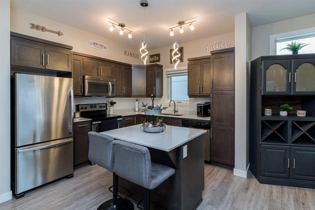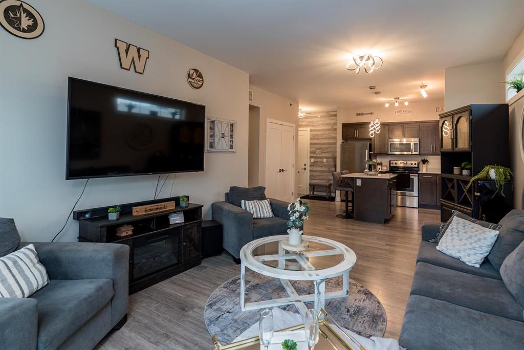 OPEN HOUSE 11/15 12-2pm Welcome to this bright 993 sq. ft. two-bedroom, two-bath condo in the heart of Transcona. This south-facing top-floor corner unit features 9’ ceilings, an open layout, and ample windows that fill the space with natural light—ideal for relaxing or entertaining. The eat-in kitchen offers quartz countertops, soft-close cabinetry, under-cabinet lighting, a tile backsplash, stainless steel appliances, and a large island with seating. The living area opens to a private balcony perfect for morning coffee or evening downtime. The primary bedroom includes a walk-through closet and three-piece ensuite, while the second bedroom works well as a guest room or home office and is paired with a four-piece bath and in-suite laundry/storage. Additional highlights include heated underground parking with secure entry, elevators, bright common areas, and landscaped green space. Pet-friendly and low-maintenance, this condo is perfect for professionals or down-sizers seeking modern living in a great location.