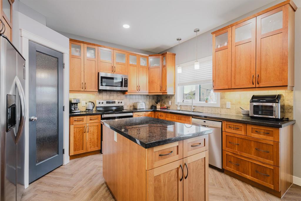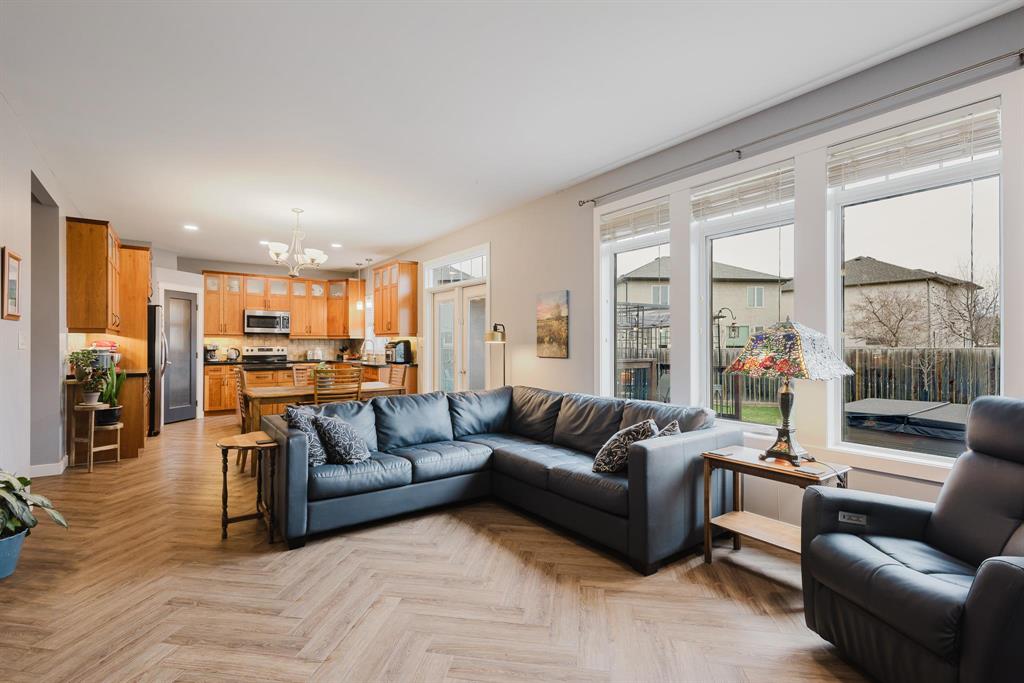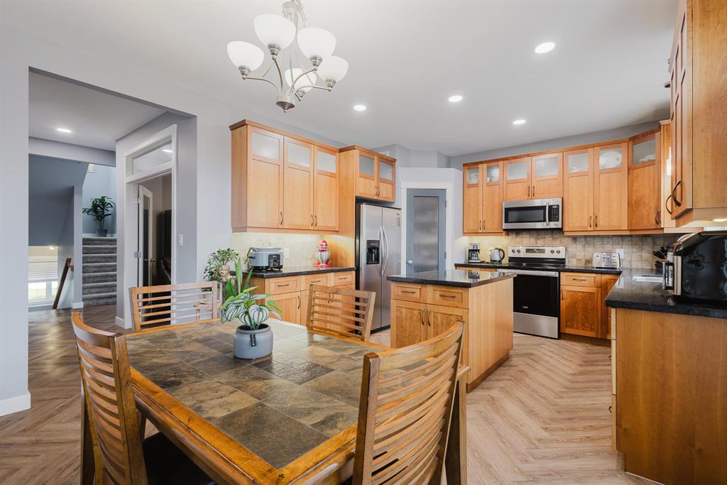 Offers as received. Perfect for large, blended, or multi-family living! This spacious home offers 6 bedrooms and 3.5 baths, providing room for everyone. The open great room features large windows and a gas fireplace, flowing into an oversized kitchen with full-size maple cabinets, island, walk-in pantry, and generous dining area. A flex room with double doors makes an ideal home office, playroom, or craft space. Main floor laundry and 2-piece bath complete the main floor level. Upstairs you’ll find 4 large bedrooms, 4 piece bath, and a primary suite with deluxe ensuite and walk-in closet. The finished basement offers oversized windows, 2 bedrooms, a spacious rec room with gas fireplace, ample storage, and a wet bar with fridge/freezer. Enjoy the fully fenced backyard with deck, hot tub (2022), raised garden beds, gazebo, and shed. Recent upgrades include LVP flooring (2024), shingles (2025), and new carpet on stairs and all 4 bedrooms and upper hallway (2025). Move-in ready and ideal for your growing family! See it and buy it the same day! No bidding wars and flexible possession. This could be it - your forever home awaits!