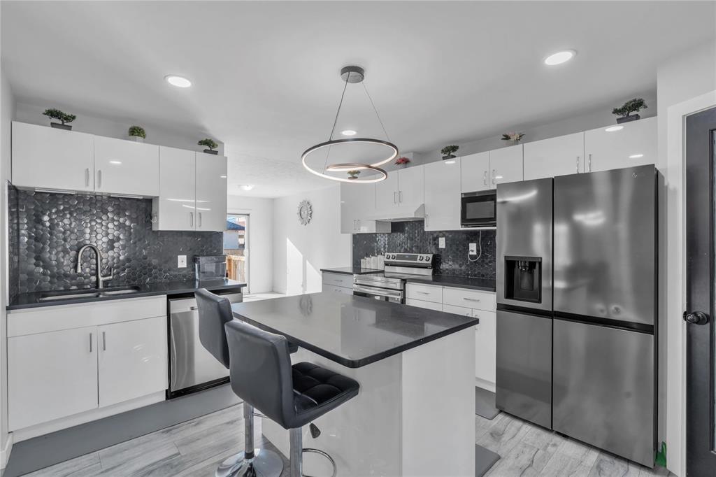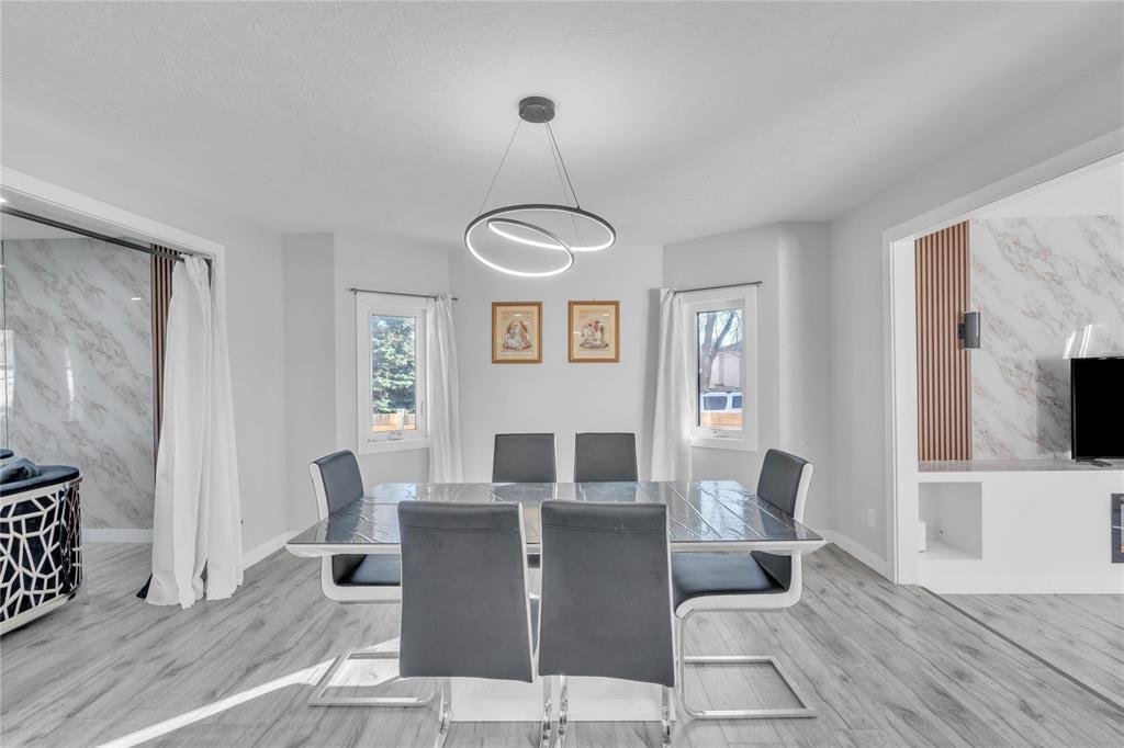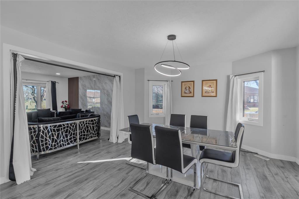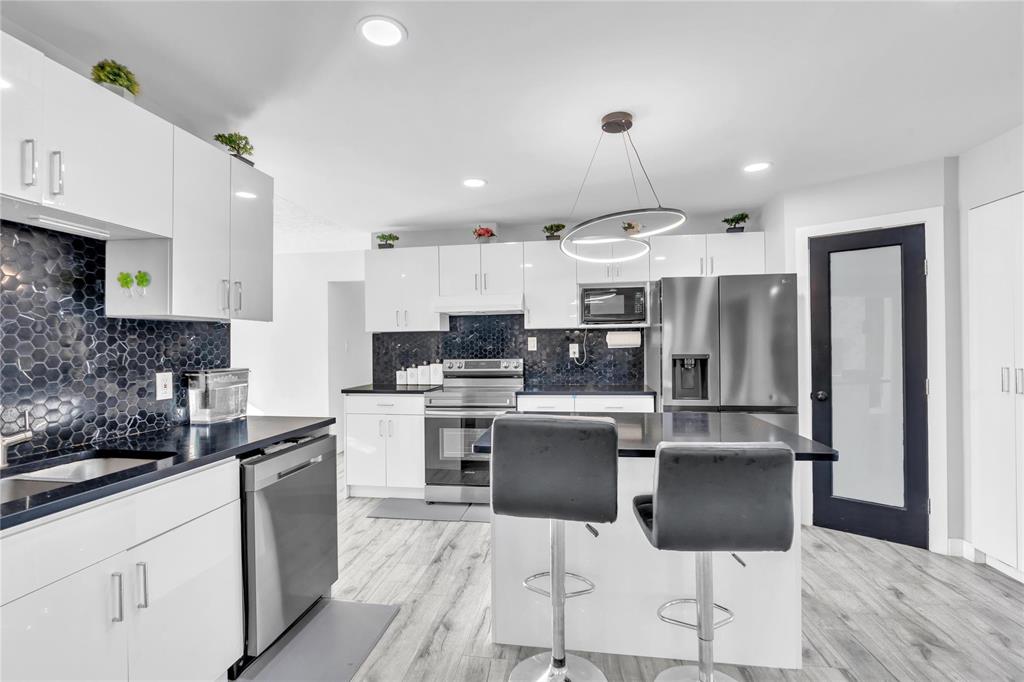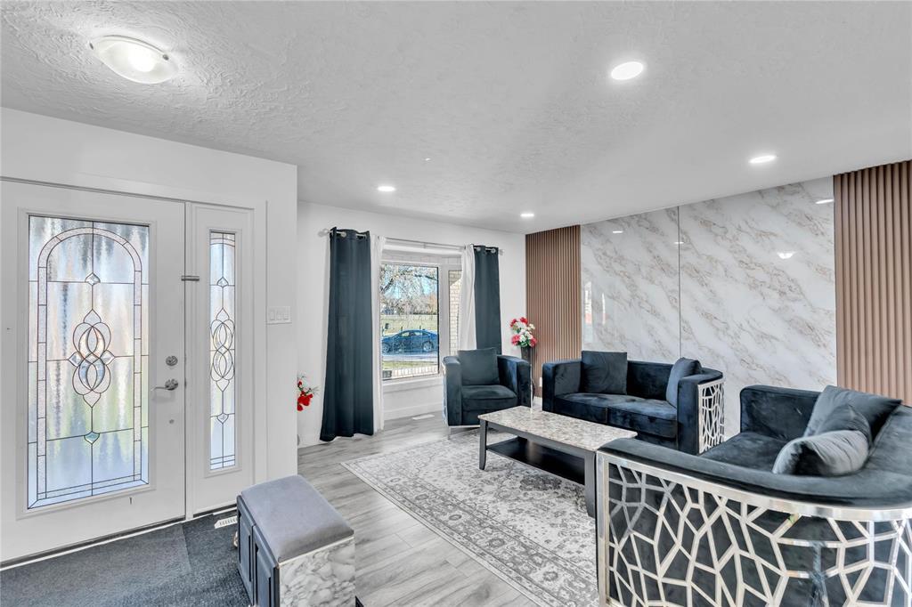 S/S Now, Offers on Wednesday November 12. Open House Sat-Sun 2-4pm (08,09 November). Discover this beautifully renovated and exceptionally spacious 1,927 sq ft bungalow in the highly desirable Maples area, featuring a total of 6 bedrooms and 3 full bathrooms on a generous 65-ft lot. The unique main floor layout offers 4 bedrooms, 2 full baths, a bright living room with a feature wall, a cozy family room with an electric fireplace, two dining areas, and a stunning brand-new upgraded kitchen complete with an island, quartz countertops, backsplash, white gloss cabinets and stainless-steel appliances. The fully finished basement with a convenient side entrance includes 2 additional bedrooms, a full bath, separate laundry for basement and an oversized rec room —perfect for entertainment or extended family living. Fully fenced backyard with deck. Outside, enjoy a double car garage with double overhead doors. Recent upgrades include new kitchen, bathrooms, flooring, paint, feature walls and appliances. Located close to Superstore, Freshco, park, bus stops and schools. Book your private showing today!