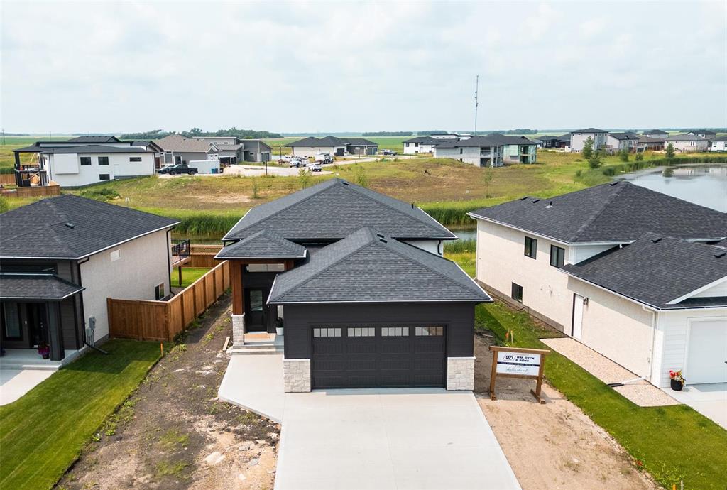 Welcome home to 20 Gleneagles Street, Niverville! A stunning Bi-level backing onto the lake and boasting top-of-the-line construction, including ICF foundation, triple-pane windows w/ Hardie board exterior, and stacked stone accent. High-end finishings including premium laminate flooring, Sprayed HDF cabinets w/ soft close, custom-built hood fan, apron sink, quartz countertops, Venetian plaster feature wall w/ live-edge Cottonwood mantle. Open concept floor plan with tons of natural light and exceptional lake views. The primary bedroom offers an impressive ensuite and plenty of closet space. 2 large additional bedrooms w/ full main bath. 22x24.5 deep garage w/ side yard space for a camper. National Home Warranty included! Possession is slated for June 1st, 2026. Call today for some of the best value in Niverville!
