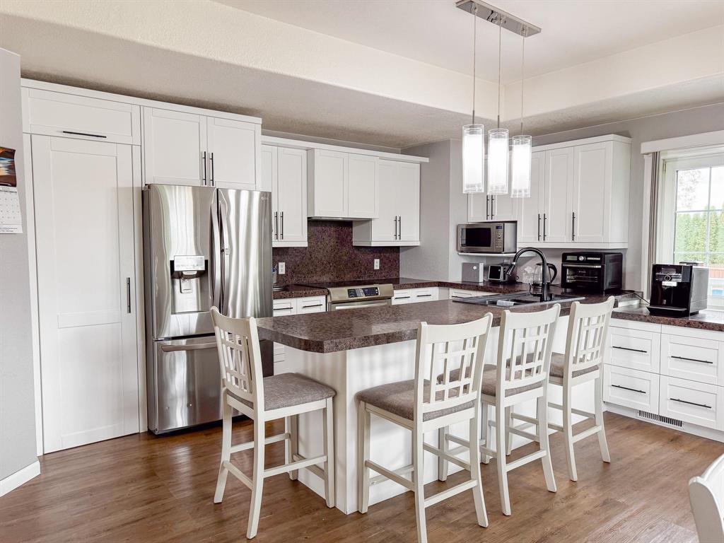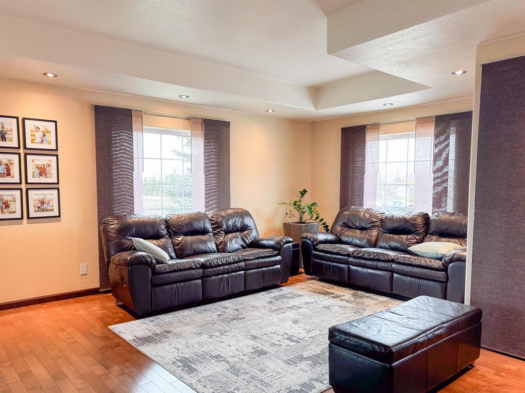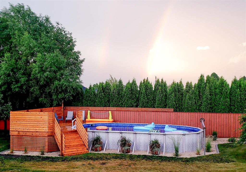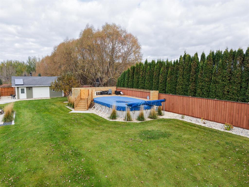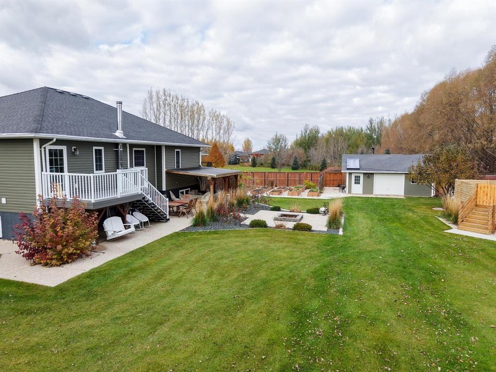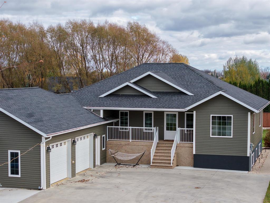 Stunning Family Home & Yard in the Village of Schanzenfeld! Immaculate 5-bed, 3-bath custom bi-level home showcasing style, space, & comfort with a meticulously kept yard! Enjoy a bright open floor plan w/ a welcoming living room w/ trayed ceilings, formal dining, & a white kitchen featuring a large peninsula & a huge walk-in pantry cleverly tucked behind a secret door. The primary suite offers a 5-pc ensuite & walk-in closet, w/ a second bedroom completing the main level. The fully finished basement expands your living space w/ a spacious rec room w/ wet bar, wood stove, & large windows, 3 more bedrooms, laundry/storage, & a 5-pc bath w/ cedar sauna. Leading to the oversized 2-car garage w/ epoxied floor, built-in workbench w/ cabinetry, & silent drive door openers is a 3-pc bath & a convenient mud room. Outside, relax & entertain w/ an aggregate patio & pergola, firepit area, composite deck, above-ground pool w/ solar heater, garden boxes, & generous green space. The 22’x26’ detached building adds even more value w/ a wood-burning sauna, overhead door for storage/parking, & concrete pad. 5 appliances are included. This home offers exceptional condition & thoughtful design, a true must-see property!