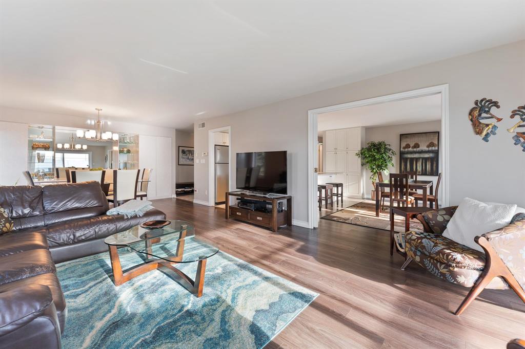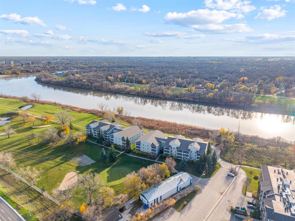 See it today, offers November 12th. Great apartment style condominium with west exposure views over the Red River. The Royal Edgewater is adjacent to the Canoe Club golf course in St Vital. This property is a top floor corner suite that is larger than most units at 1,508 square feet. This condo has 2 indoor parking stalls plus storage locker and yes the building does have an elevator. Very spacious living area with tile front electric fireplace, laminate floors and patio doors to a 3 season sunroom. Living and dining room are wide open and offer great space for family events. Dining room with built in buffet and cabinets plus display space. Kitchen with white raised panel cabinetry, stainless steel appliances, counter height breakfast bar, large eating area with even more storage cabinetry. Primary bedroom with walk thru closet, 3 piece ensuite plus enclosed 3 season sunroom. Main bathroom with large jetted tub. Main floor laundry also has great storage. Also features central air conditioning. Shingles and elevators have been updated. Vinyl siding, aluminum soffits and fascia. Condo fees include hydro and water. No smoking or pets. Golfing next door and great walking area along Kingston Crescent.