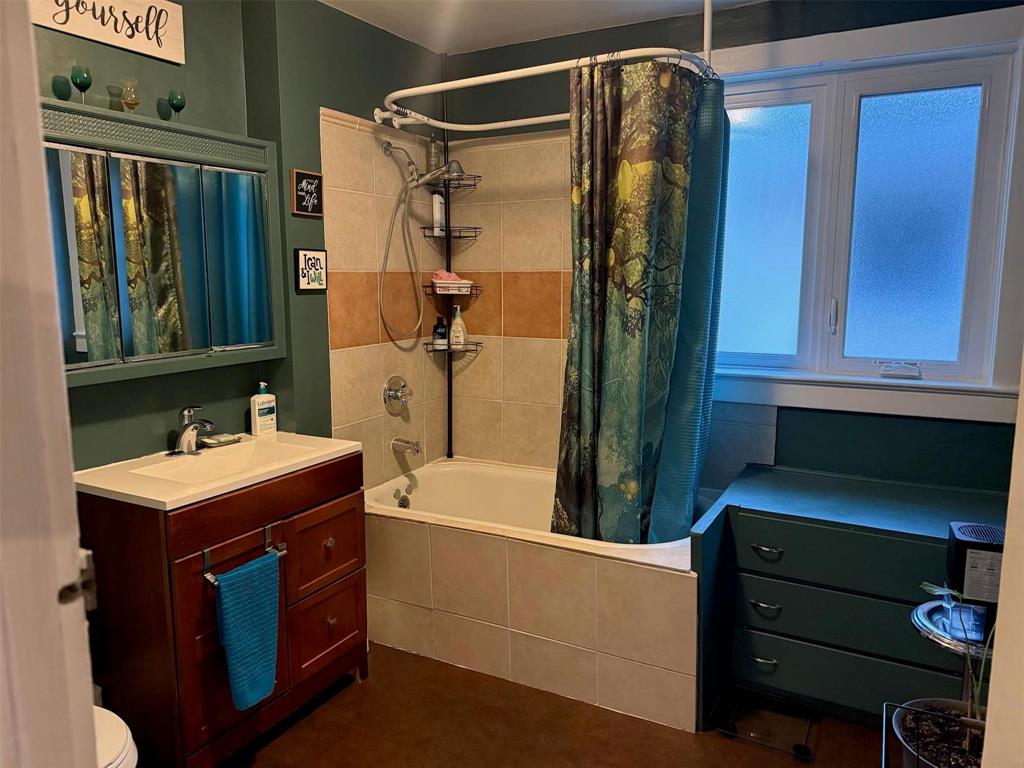 Large Bathroom with Soaker Tub & Built-in dresser/drawers.