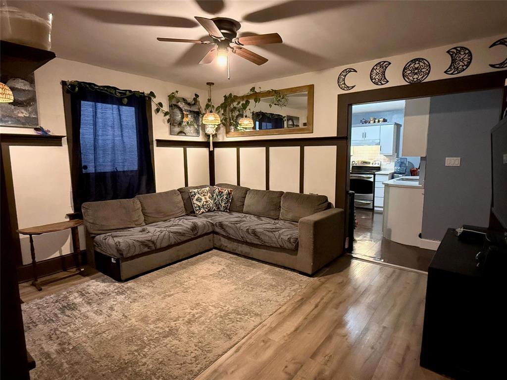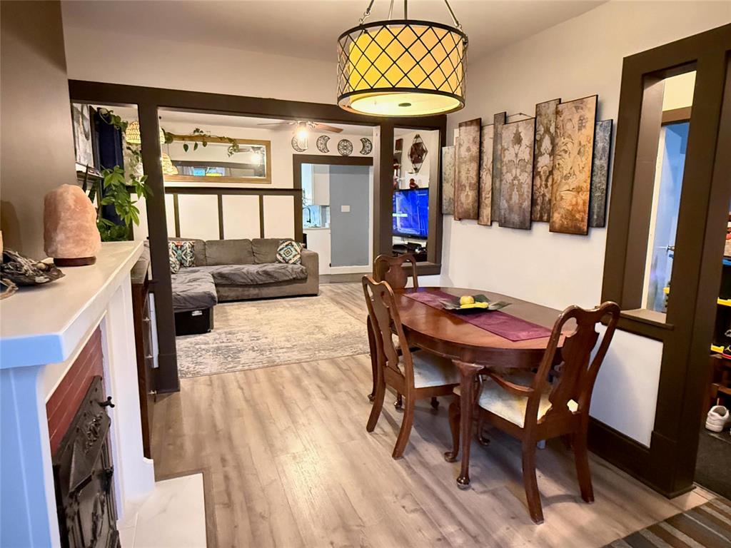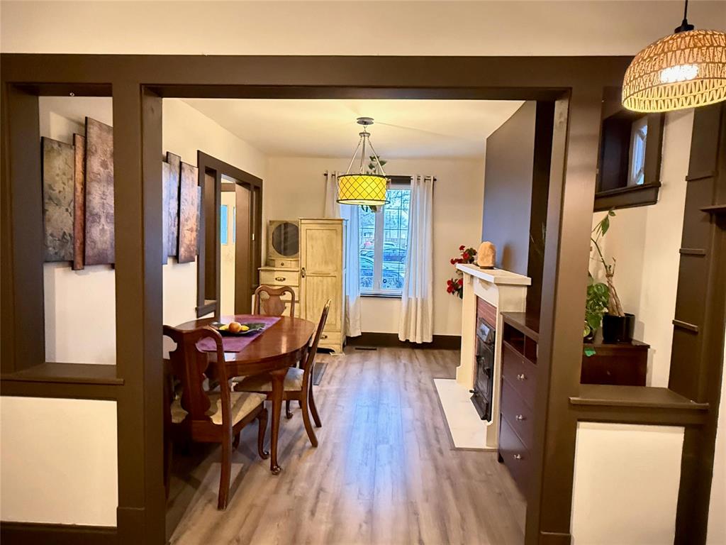 Formal Living/Dining Room with Fireplace (not used). Updated Laminate Flooring.
