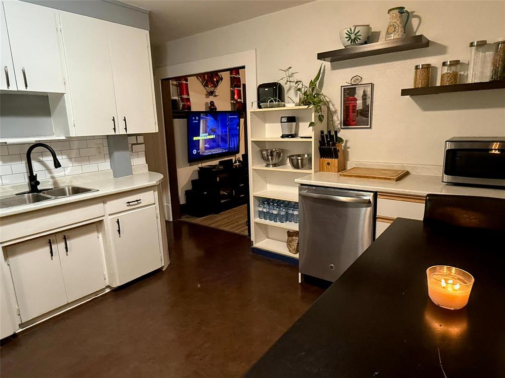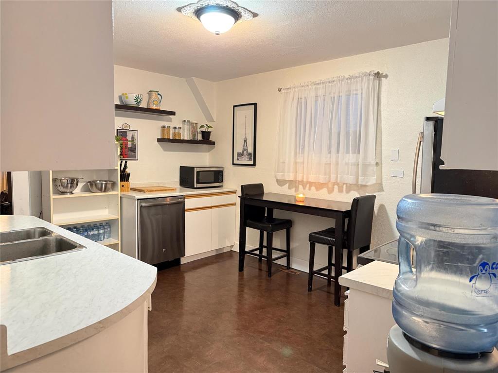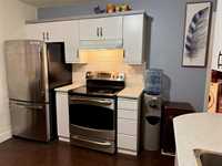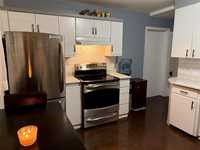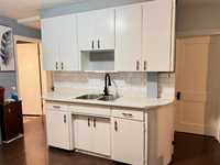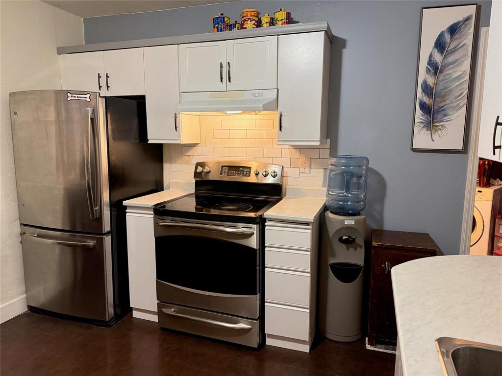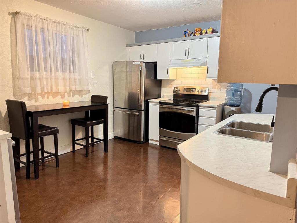 Large Eat- In White Kitchen with Extra Cabinets, S/S Appliances Remain.