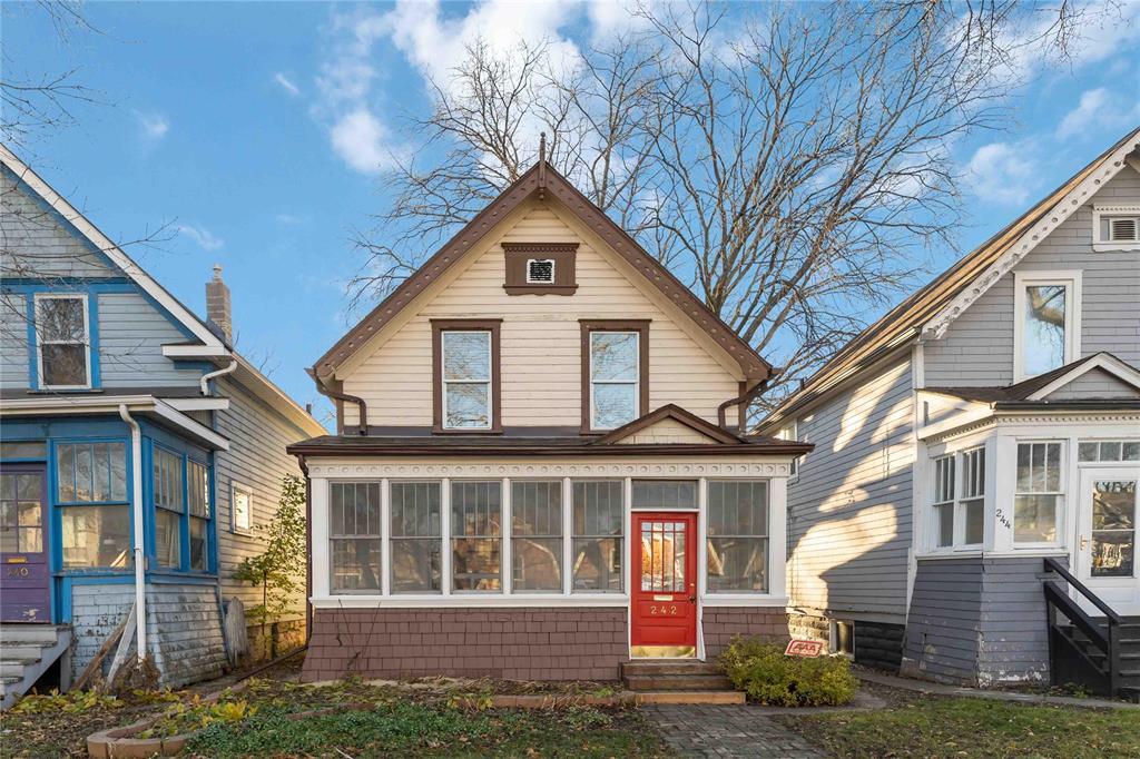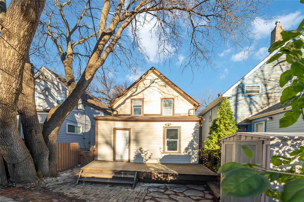 SS Now, O/H Sat/Sun 1-2:30, OTP Nov 10 7pm. Prime Fort Rouge/Riverview location – East of Osborne! This charming and stylish home blends character with modern updates. The beautifully remodeled white eat-in kitchen (2016) features tall cabinets with glass accents, tile backsplash, undercabinet lighting, stainless steel appliances (including built-in microwave and panel-front dishwasher), and tile flooring. The spacious open living/dining area showcases engineered hardwood floors, while the main floor offers laundry/butler's pantry, a 3-season front sunroom, and a handy back mudroom. Upstairs you'll find a large primary bedroom with two closets, a cozy second bedroom ideal for an office or guests, and a sunny bathroom with plenty of room to relax. Additional upgrades include shingles (2022), some newer windows, high-efficiency furnace (2006), upgraded insulation, and updated electrical (no knob & tube as per previous owner). Enjoy the private, mature, fenced yard with a deck and shed and parking for two vehicles. Freshly painted and ready for its new family!