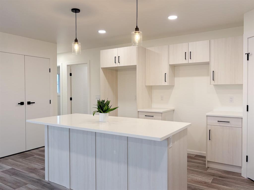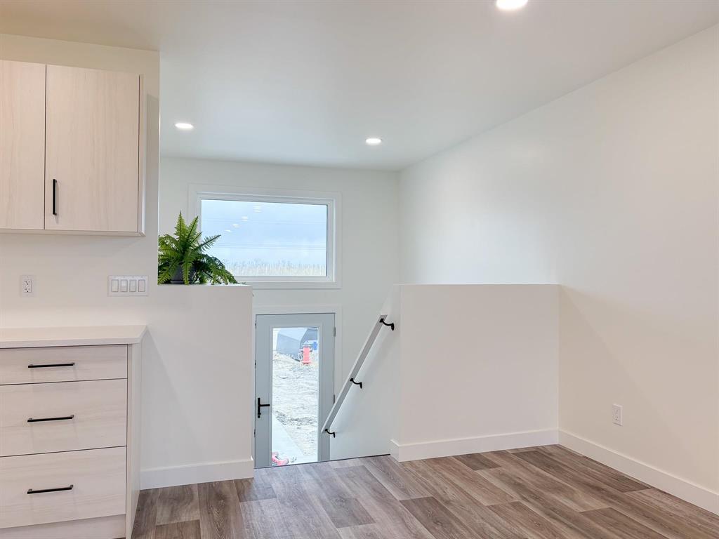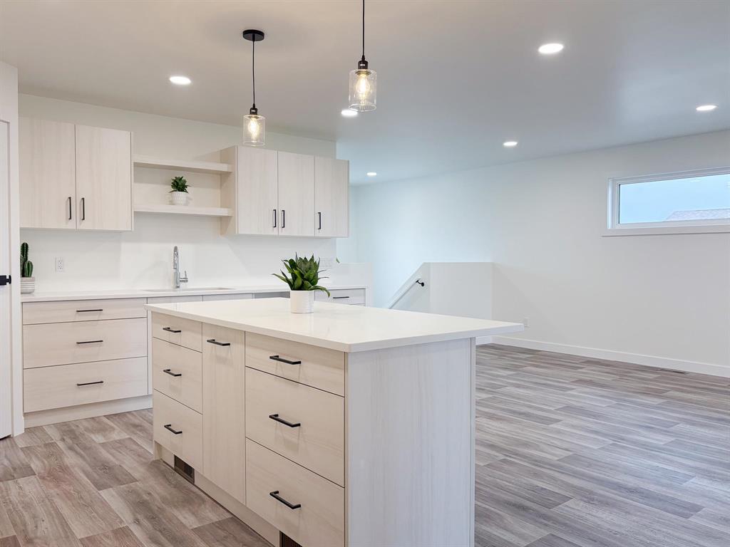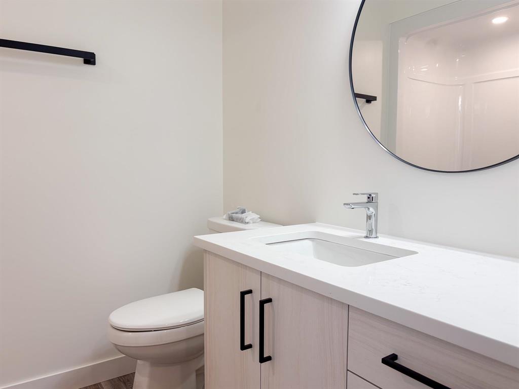 Discover this brand-new 1,183 sq. ft. bi-level home perfectly backing onto green space with a walking path. Enjoy privacy, quiet, and the benefits of new construction in a prime location. The bright open-concept main floor features a south-facing living room, spacious dining area, and a stylish custom kitchen with quartz countertops. Two bedrooms complete this level, including a primary suite with walk-in closet and 3-piece ensuite, plus a full 4-piece bath.