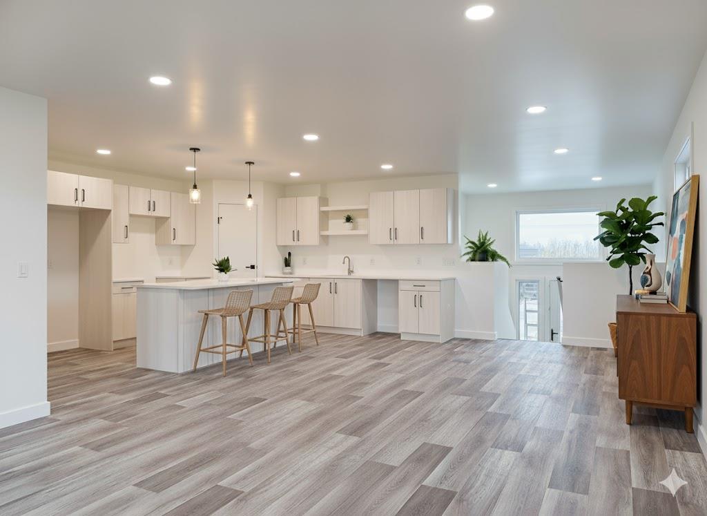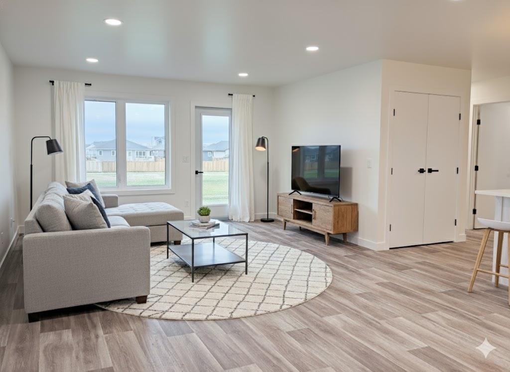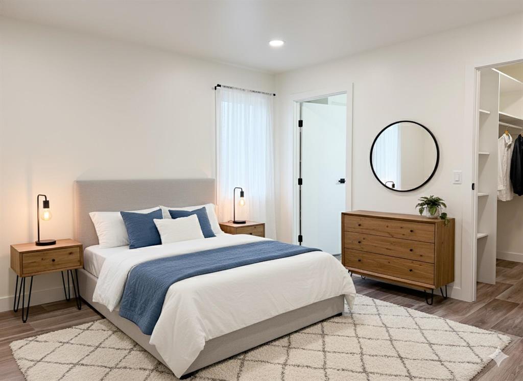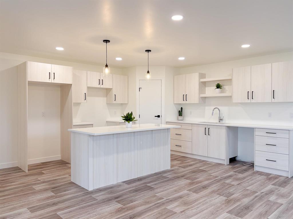 Discover this brand-new 1,183 sq. ft. bi-level home perfectly backing onto green space with a walking path. Enjoy privacy, quiet, and the benefits of new construction in a prime location. The bright open-concept main floor features a south-facing living room, spacious dining area, and a stylish custom kitchen with quartz countertops. Two bedrooms complete this level, including a primary suite with walk-in closet and 3-piece ensuite, plus a full 4-piece bath.