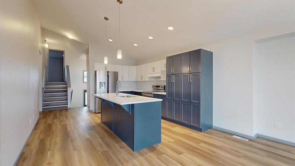 Ss now. Offer reviewed as received. Why build when you can move into this almost new house in Prairie Pointe. This 1580 square feet cabover offers 3 bedrooms, 2 full bath and big windows basement for future development. Main floor features with open concept, designer selected two tone Kitchen cabinet and Stainless-Steel Kitchen appliance. Bright dining room and living room with huge windows and vault ceiling make the space cozy and comfortable. Quartz counter top and upgraded Vinyl Plank flooring throughout the house. Upgraded bathrooms. Two decent size bedrooms on main floor with full bath. Over-sized primary bedroom located on the upper floor with walk-in closet and five-piece ensuite. East facing lot. APPLIANCES INCLUDED. Call today to book your appointment. QUICK POSSESSION AVALIABLE. Book your showing today.