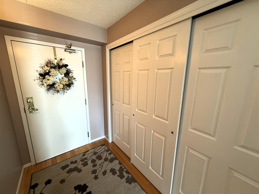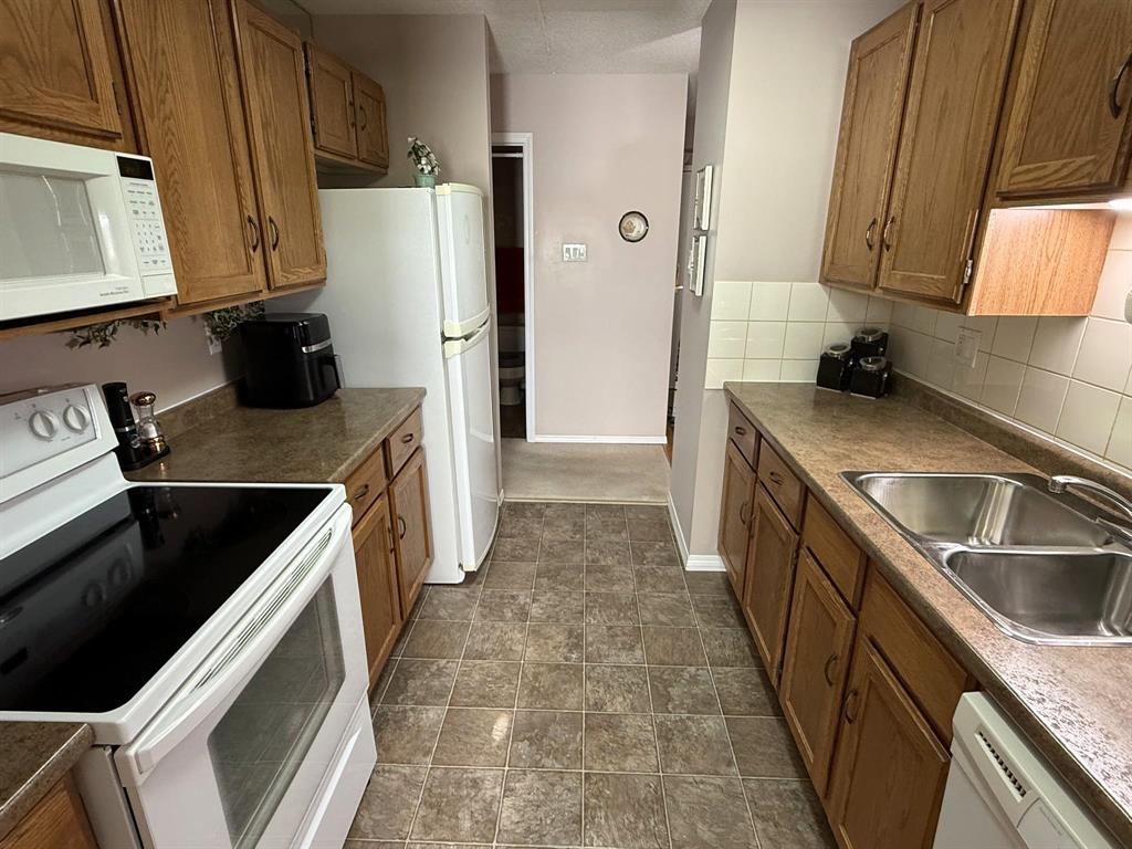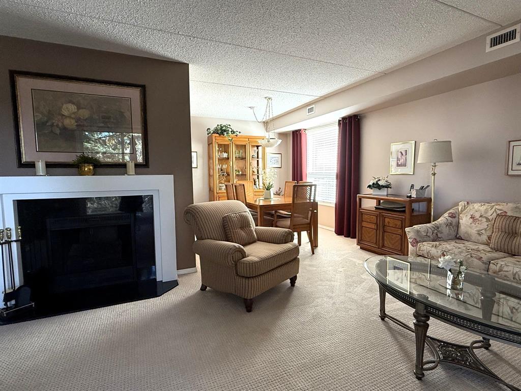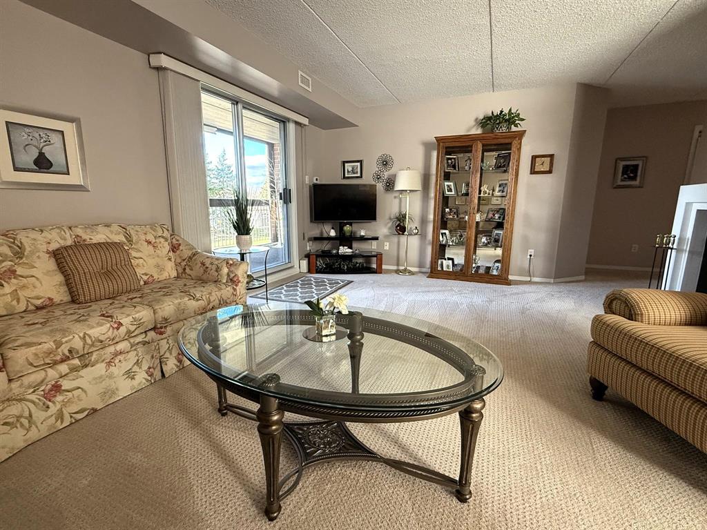 Move in and enjoy! This well located and meticulously maintained 2 bedroom, 2 bathroom condo is sure to impress! Enter the bright and spacious L-shaped living room and dining room with electric fireplace, kitchen with oak cabinets, full main bath. Primary bedroom with an abundance of closet space, 4pc en-suite, good sized second bedroom. Second floor end unit, southwest corner, patio doors to large west setting balcony. Enjoy to the open air balcony or pull across the custom screen enclosure! In-suite laundry, heated under-ground parking stall, 6 appliances included and more! This one shines!