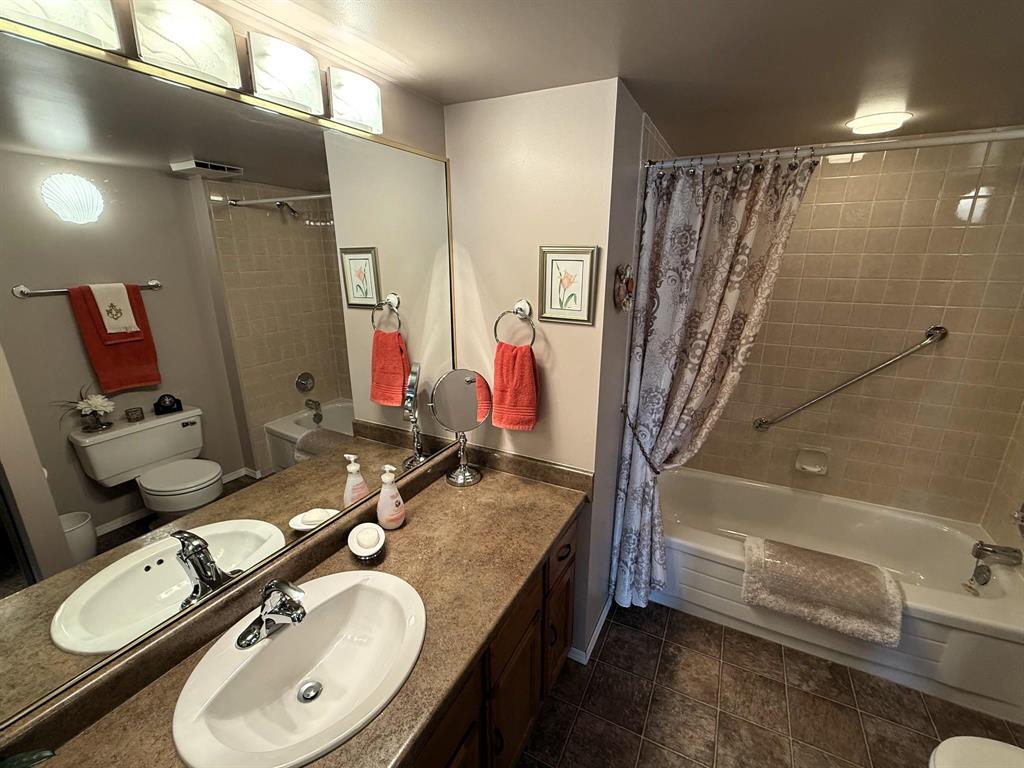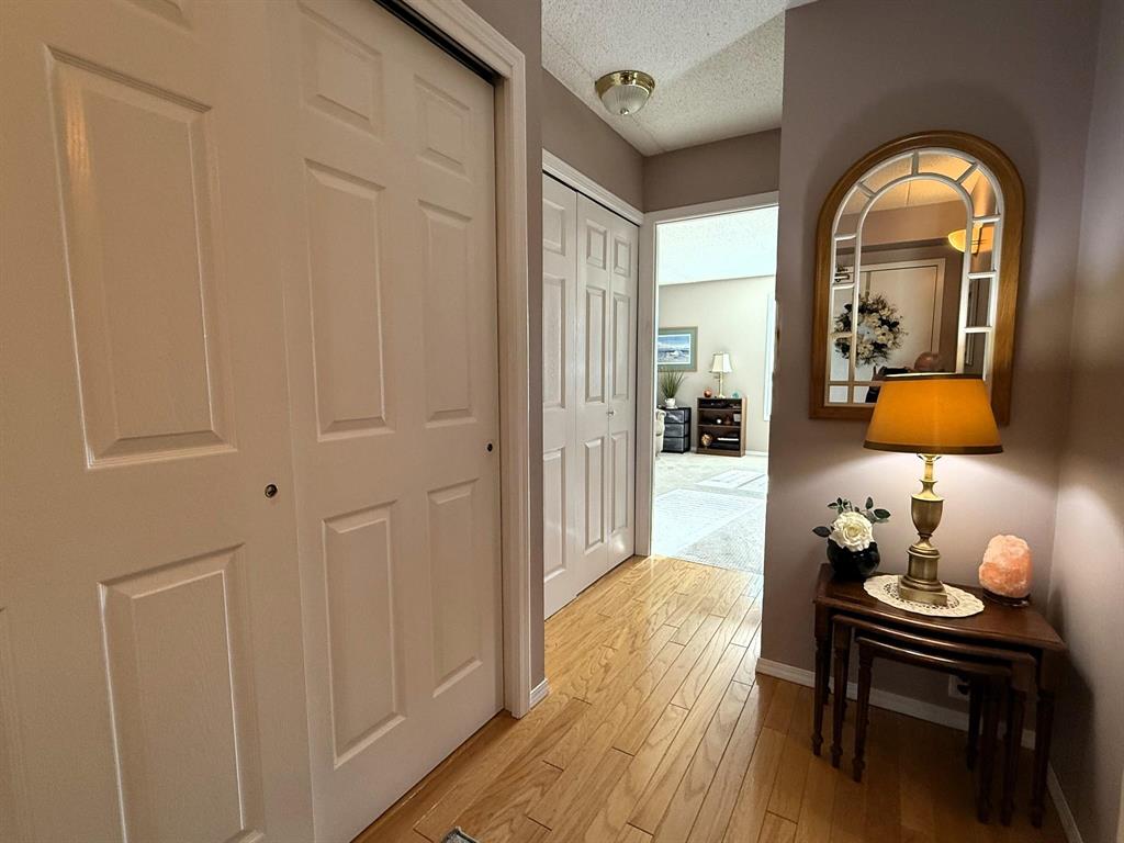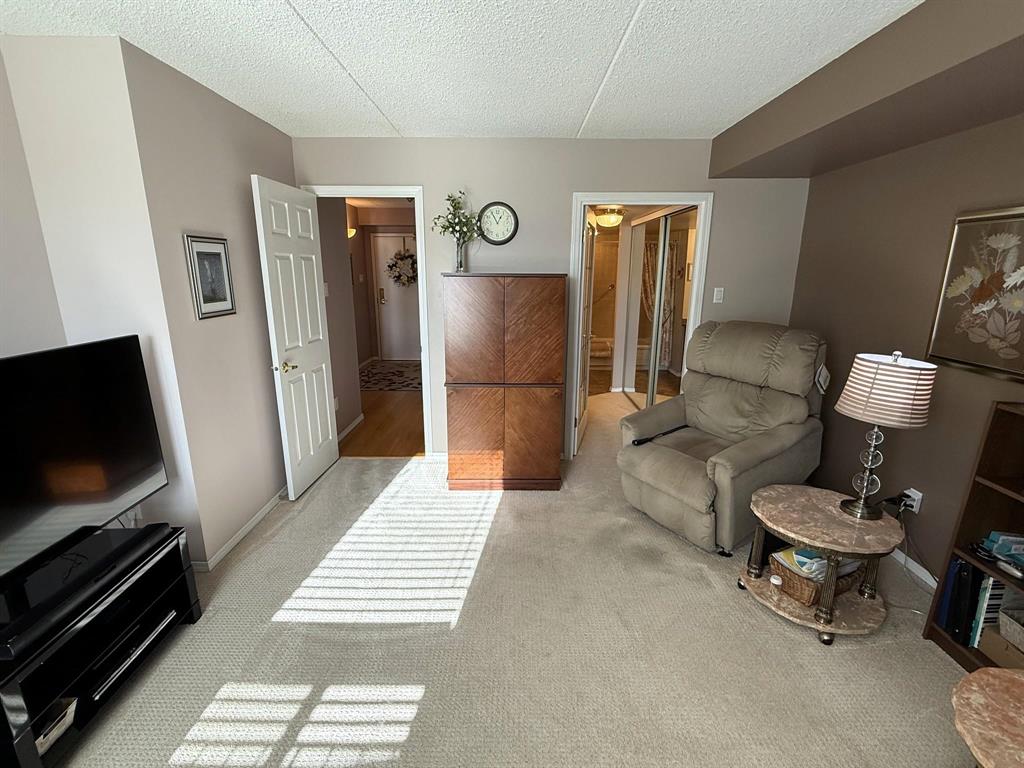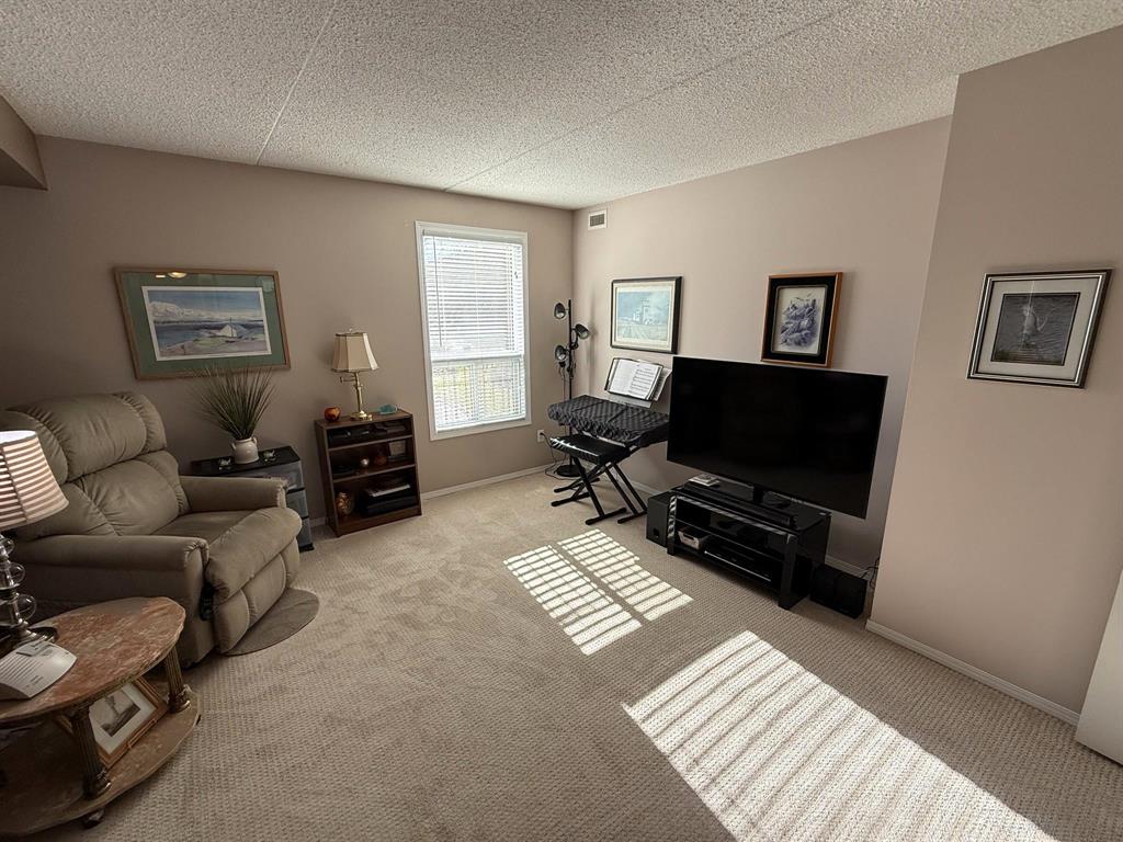Move in and enjoy! This well located and meticulously maintained 2 bedroom, 2 bathroom condo is sure to impress! Enter the bright and spacious L-shaped living room and dining room with electric fireplace, kitchen with oak cabinets, full main bath. Primary bedroom with an abundance of closet space, 4pc en-suite, good sized second bedroom. Second floor end unit, southwest corner, patio doors to large west setting balcony. Enjoy to the open air balcony or pull across the custom screen enclosure! In-suite laundry, heated under-ground parking stall, 6 appliances included and more! This one shines!
