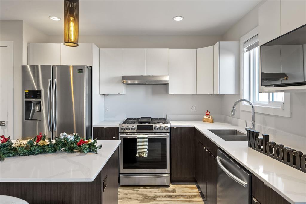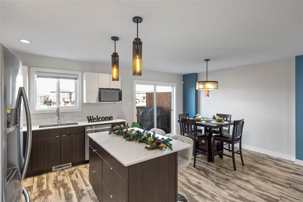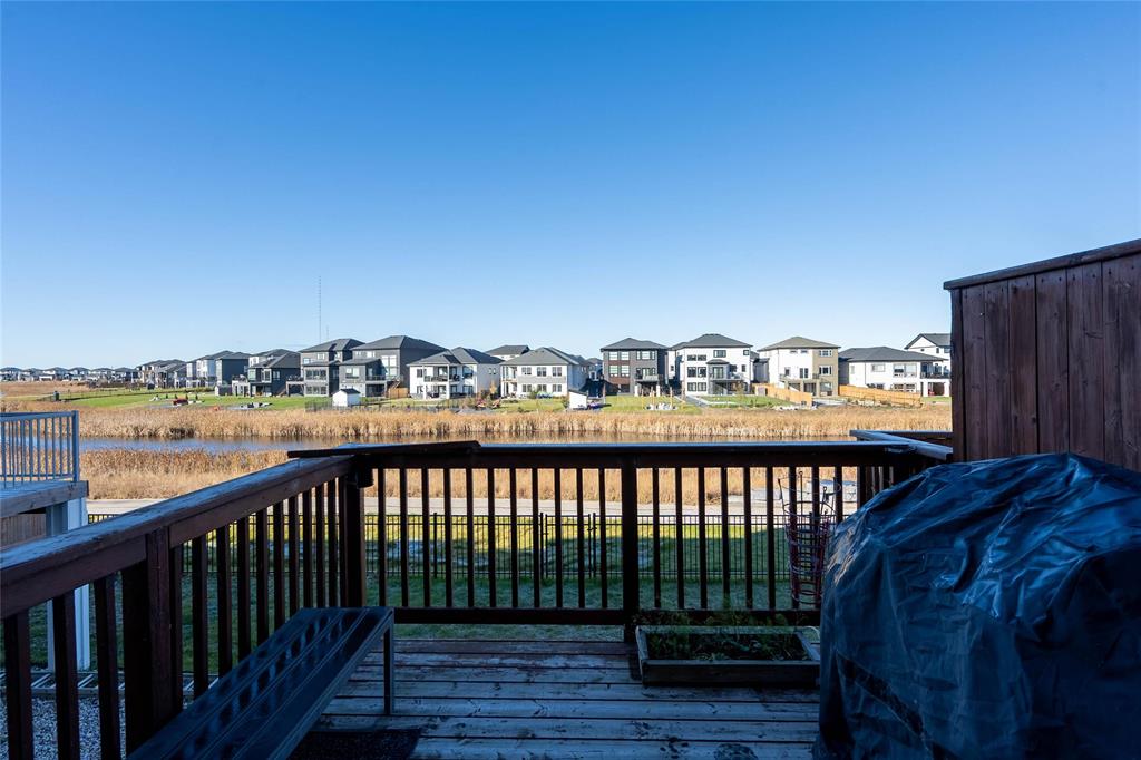 Showing starts now. Offers as received. Open House: Nov 8th & 9th(Sat & Sun) 1:00-3:00 PM. Welcome to this stunning two storey home with walkout basement, single attached garage, located in Bridgwater Trails with lake view at the back. This beautiful house is 1501 SF, features 3 bedrooms and 2.5 baths, cozy open concept living and dining room area with lots of natural light. Good sized kitchen with brand new quartz countertop, new sink, gas stove and plenty storage area. Nice balcony that you can just sit, relax and enjoy the water view and sunsets. Large primary bedrooms with 3pc ensuite and walk-in closet. Two more good sized bedrooms and a convenient laundry room on the second floor. The walkout basement is insulated and is ready for your own style development. It leads to a backyard with a patio and a gate to access Walking Trails and lakes. Prime location near shopping, transit, playgrounds, and future schools. Book your showing today!