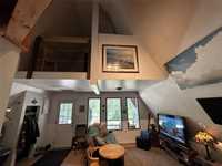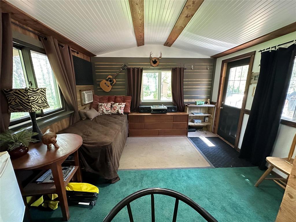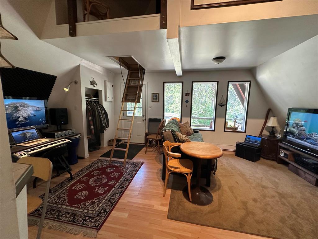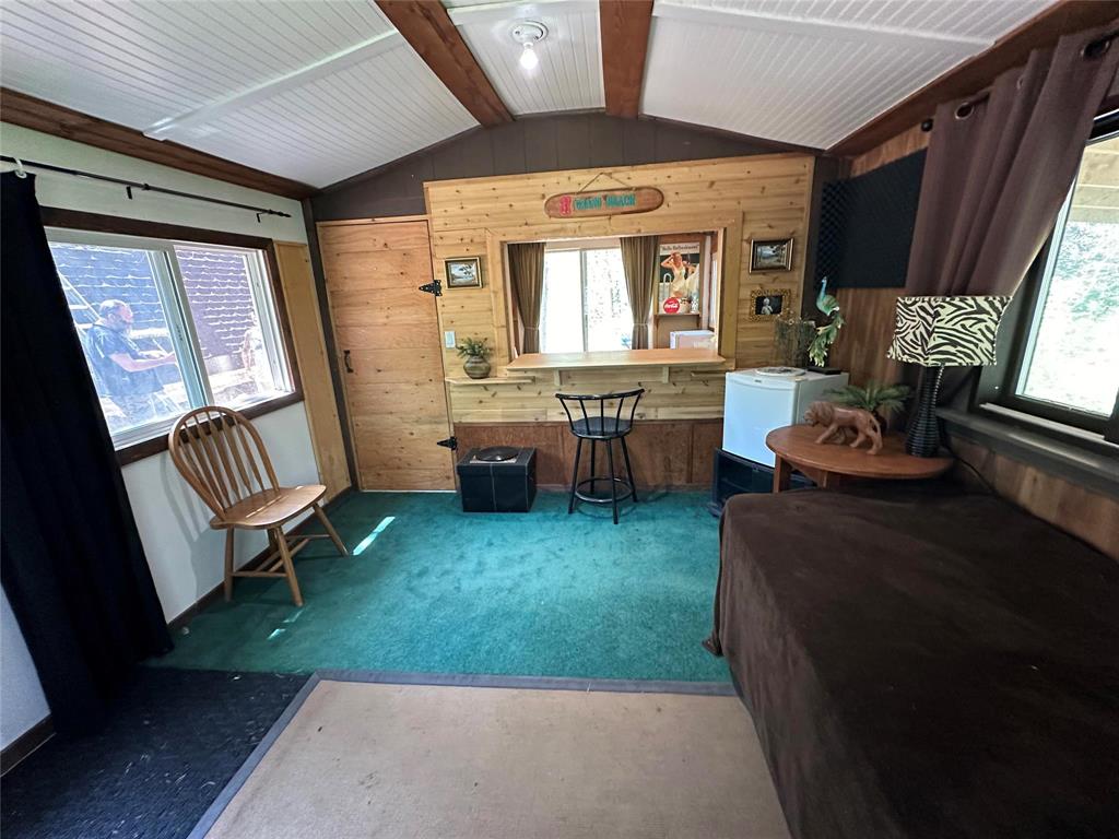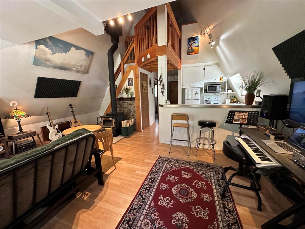 One of a kind! 2 COTTAGES FOR ONE LOW PRICE!!! JUST BEHIND GRAND BEACH PARK, ADJACENT TO WOODS AND TRAILS!!! This unique A frame cottage features soaring cathedral ceilings and 2 lofts! The primary loft is tucked in and is used as a Second Bedroom, and the whimsical secondary loft is accessible by ladder is used as a third guest bedroom/ reading loft and leads to the front balcony. The main level is open with a breakfast bar between the Kitchen and Dining Room Area. Fully Year round, with a Drilled Well, Baseboard Heat, and a Woodstove. There is a 4 pc Bath and Bedroom on the main floor as well. Located near the end of the road in a quiet development, But next to Grand Beach park. this 1. 1 acre property features several outbuildings including a HUGE 2 room bunkhouse with lean-to storage, and insulated shed/ workshop with separate office area tucked in behind. Perfect for you and yours!!