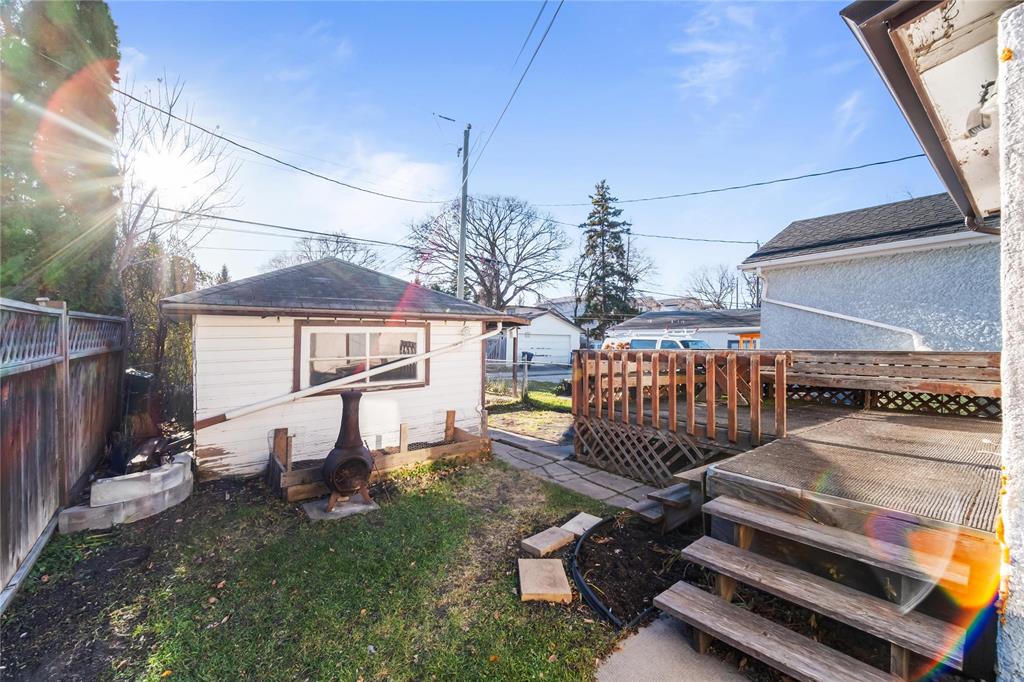 Offers as received! Great St. Vital starter home with loads of potential! Inviting front entry opening into generous Living Room area. Two bedrooms on the main floor with a full 4-pc bath featuring tiled tub surround & deep soaker tub. Galley-style eat-in kitchen with updated countertops, sink & faucets (2023) Newer SS dishwasher (2023). Cozy eating area overlooking backyard. Full basement offering great storage, laundry & potential for future rec/hobby area. Fenced rear yard with single detached garage structure, carport & good sized rear wooden deck. Shingles (2010) & eaves (2025). A great opportunity for first time buyers, investors or home flippers to build some sweat equity! Steps from all that St. Vital has to offer including greenspace, schools, shopping & transit. Come see this one today!