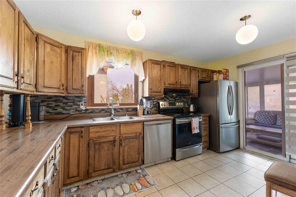 Offers as received. Open house Saturday Nov 15 & Sunday Nov 16 from 2-4pm. Welcome to this beautiful home located on a quiet street in Sun Valley Park. This 3 bed, 2 bath 4-level split begins as you enter through the foyer to a relaxing main floor living room with a classic stone wood fireplace. Walk up to a formal dining area with an adjacent den providing a great place to entertain. Follow through to a spacious kitchen with ample counter space and cabinets and continue through the patio doors to a serene 3 season sunroom, perfect for an early morning coffee and family gatherings. The large master bedroom and 4 pce bath completes the upper level. Make your way down to the lower level where you'll find two generous sized bedrooms with another 4 pce bath and laundry room. Escape to the basement to a good sized rec room which includes a sauna and plenty of storage. Includes washer/dryer (2019), stove/fridge/dishwasher (2020), shingles (2020), hot water tank (2019), hi-eff furnace (2022), A/C (2022), Nest thermostat and self monitored CO/alarm, and gazebo.. Close to schools, shopping, parks and more. Book your showing today!