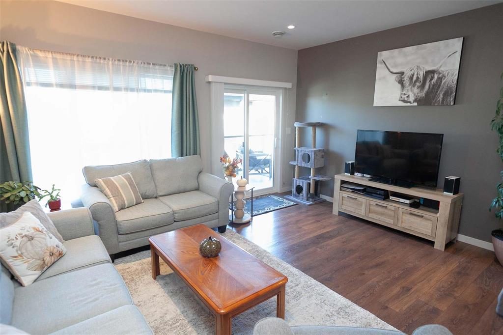 Small town living but only minutes from Winnipeg! This beautiful and spacious condo in Ile Des Chênes offers an ideal lifestyle. Modern finishes, gleaming floors and tasteful paint colours throughout. Open plan living with large entertaining areas overlooked by the stylish kitchen. The kitchen is well-designed with great cabinets, sizeable pantry and nice appliances. The large peninsula showcases gorgeous granite counters and offers extra dining space. The spacious dining area includes character picture nooks and beautiful lighting. The large living room has room for everyone to sit and relax together. Sliding doors lead to large patio. Sit and enjoy the outdoors from the privacy of the top floor! Huge primary bedroom features a large walk-in closet and ensuite with walk-in shower. This condo features an additional den (with great closet), currently used as a nursery, as well as a second full bathroom with tub/shower. Plenty of storage throughout including in-suite laundry room, extra storage room near the condo's front door, single car garage, and second parking spot. This bright and modern condo is ready for you to simply move in and enjoy condo living at its best!