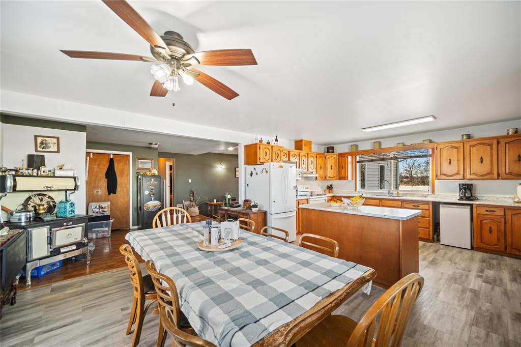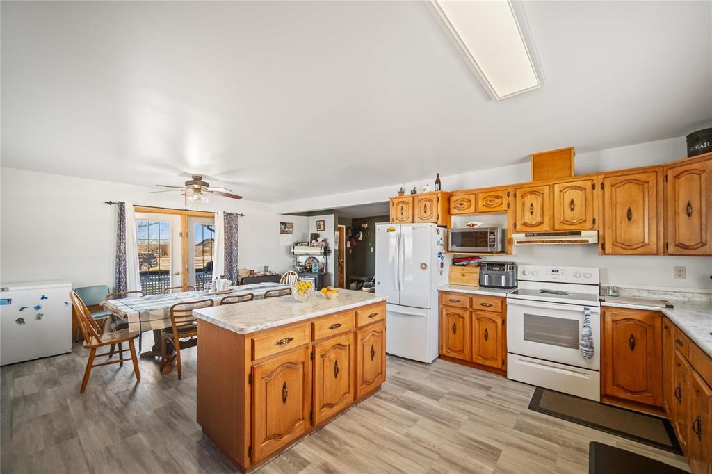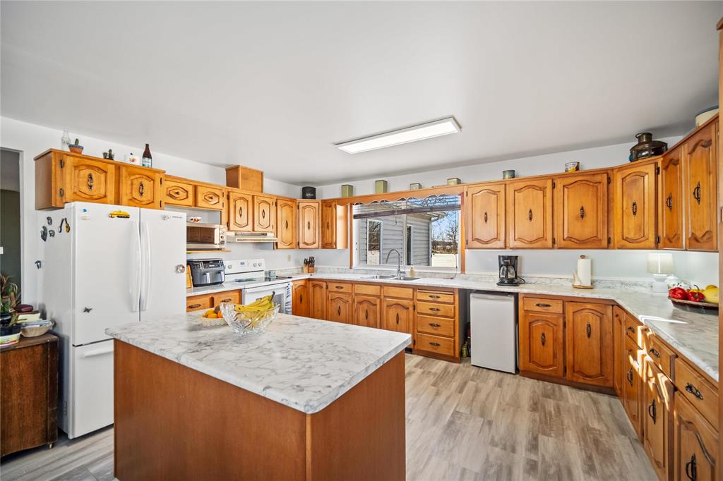 Bring your country dreams to life on this beautiful 10.66-acre property, offering space, privacy, and endless opportunity. The spacious 2,700 sq. ft. 4-bedroom, 2-bath home welcomes you with an inviting layout designed for comfortable family living. The massive living room is truly the heart of the home, featuring a vaulted ceiling and large picture windows that fill the space with natural light and showcase the peaceful rural views. Bright and functional kitchen offers plenty of room for cooking and entertaining, while the generous bedrooms and baths provide comfort for the whole family. Whether you’re hosting gatherings or enjoying quiet evenings at home, this property offers the perfect blend of space and serenity. 40x60 insulated shop with in-floor heat and a 14-ft overhead door is ideal for anyone needing a workspace, hobby area, or storage for large equipment. You’ll also find a storage shed/garage for extra convenience and a 140x40 barn or riding corral — perfect for animals, projects, or transforming into your dream equestrian setup. Plenty of open space, mature trees, and room to expand, this property is the perfect balance of functionality and freedom.