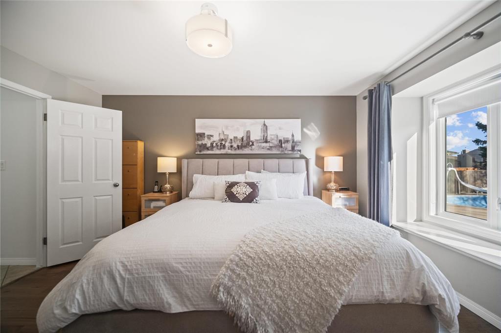Showings start Wed Nov 12th with offers on Mon Nov 17th. Welcome to an Absolutely Stunning Home & Property! This home will not disappoint. As you drive up you will notice the brick front exterior, with interlocking brick & concrete driveway, plus additional parking to the right of the double garage. Meticulously maintained yard with a fenced rear yard designed to entertain! Equipped with fire pit, Aqua Tech in ground pool 2002, liner 2017, & plenty of deck and patio space. These Long time owners have not only maintained their home, but have added many updates and upgrades over the years. Features: Neutral open layout with maple hardwoods, & tile flooring throughout the main floor. Bright white kitchen with Granite counters, sunken dining room with gas fireplace, cozy reading nook, & welcoming living room! All three bathrooms have been updated. The basement has a large recroom with dry bar & bar fridge, ideal for a Grey Cup party! Updates include: Shingles 2020, main & ensuite bathrooms 2011, fireplace 2007, kitchen 2005, exterior doors & windows between 2018 -2022. Your wait is over, make this home Yours!