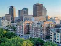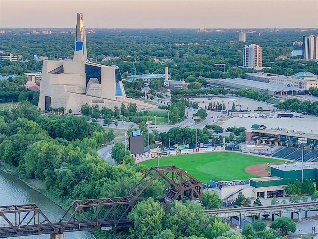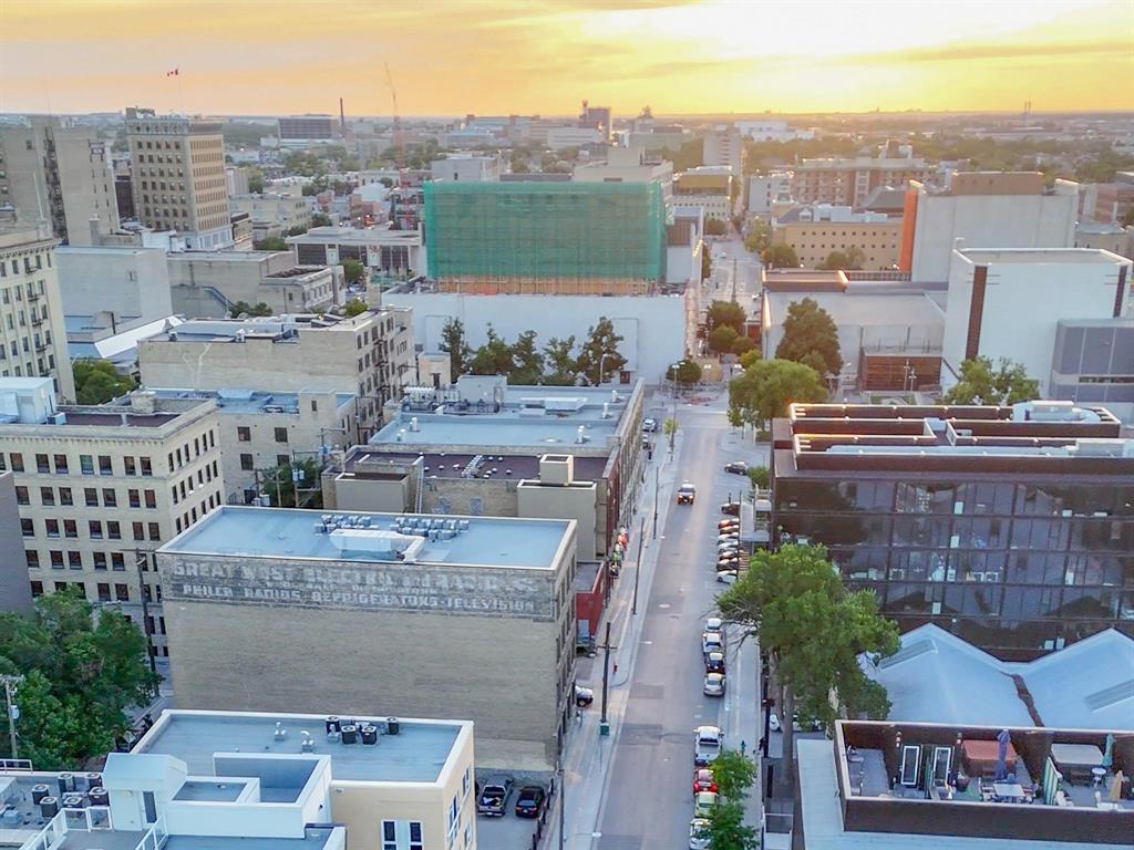 WOW! Can you say super cool? 1140 sq foot contemporary corner unit condo is flooded with light and floor to ceiling windows! Full of exposed brick and huge Fir beams! This 1 bedroom 1 bath condo is sure to impress! Super spacious open concept! This former Display suite will not disappoint-same owners for 9 years! Huge Island in the kitchen and tons of cabinet/counter space. Quartz and butcher block counters!! Spacious primary bedroom easily accommodates a King sized bed, has double closets and huge windows! This condo conversion offers all the modern amenities such as central air and new windows throughout but keeps the vibe of turn of the Century features! Condo fees include almost all utilities except internet! Steps away from the Theater District,The Centennial Concert Hall, coffee shops, tons of great restaurants bars and shops! Convenience stores,Comedy clubs and a new Cigar Bar opening soon! Amazing sense of community in the area,with always lots going on! Walk along the River path to the Forks with newly added Fitness stops and water fountains! Come check out what all the hype is about in Winnipegs Exchange District! You will love it!