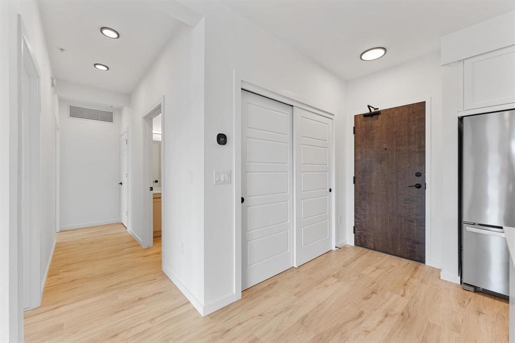 Like new and move-in ready! This beautifully designed 4-month-old main floor condo offers the perfect mix of style, comfort, and convenience. Featuring 2 spacious bedrooms and 2 full bathrooms, the open-concept layout includes durable laminate plank flooring, quartz countertops, and a full appliance package. The bright kitchen flows seamlessly into the living area, with direct access to your private patio—ideal for morning coffee or entertaining. Enjoy the rare benefit of 2 parking spots: one heated indoor stall plus an additional outdoor space. The building offers fantastic amenities including a common lounge with pool table and kitchen area, as well as a fully equipped gym. Pet-friendly and located close to shopping, restaurants, transit, and parks, this condo is perfect for first-time buyers, downsizers, or investors. A modern home in a prime location—don’t miss this opportunity!