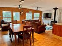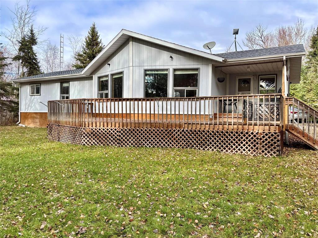 Welcome to this cozy and spacious 3-bedroom, 1-bath bungalow in beautiful Grindstone Provincial Park! Set on a private lot just steps from the lake, this 1,516 sq. ft. home offers the perfect mix of comfort and tranquility. Enjoy a large front deck, expansive back deck, and double detached garage with extra wood shelter. Inside, the bright open layout features a stand-alone wood stove, propane kitchen stove, and quartz countertops. Recent updates include new plywood skirting and full spray foam insulation around the crawlspace (2024), new water softener (2023), and new weeping tile along the north side of the home. Option to purchase furnished or unfurnished. Riding lawn mower and snowblower included. Grindstone Provincial Park offers a friendly community surrounded by nature, trails, and lake access—ideal for family gatherings or peaceful year-round living!