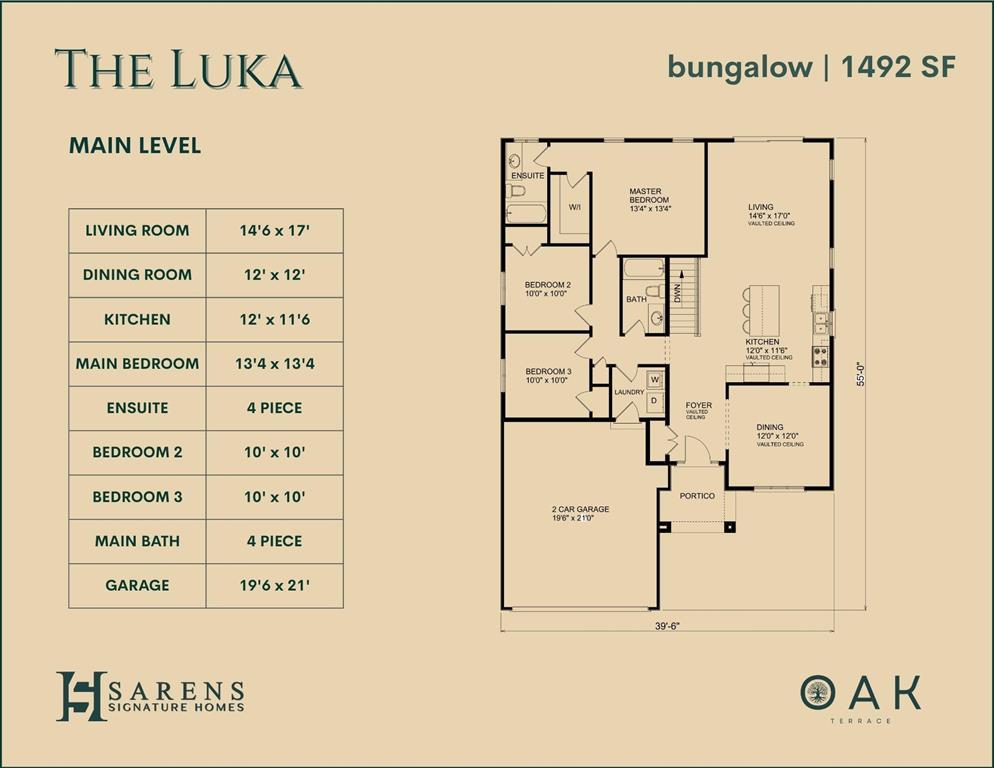Welcome to The Luka, the premier bungalow of the Lorette Collection by Sarens Signature Homes. Located in the brand new neighbourhood of Oak Terrace in Lorette, this home blends everyday ease, durable construction, and inviting design in a safe and active community. //INVITING Nearly 1,500 sf, 3 bedroom, 2 bath, open kitchen connects to eating and living, dedicated dining room provides more entertaining space, main floor laundry. //BEAUTIFUL Vaulted ceilings, Hardwood floors, tiled foyer and baths, and custom AYA cabinetry. Select finishes at our Design Studio, or choose from our signature design collections. //DURABLE This home is Built to stand steady through our Manitoba climate: piled foundation, plywood exterior sheathing, triple-pane windows, spray-foam–sealed joist cavities, and continuous rim-joist seal.
