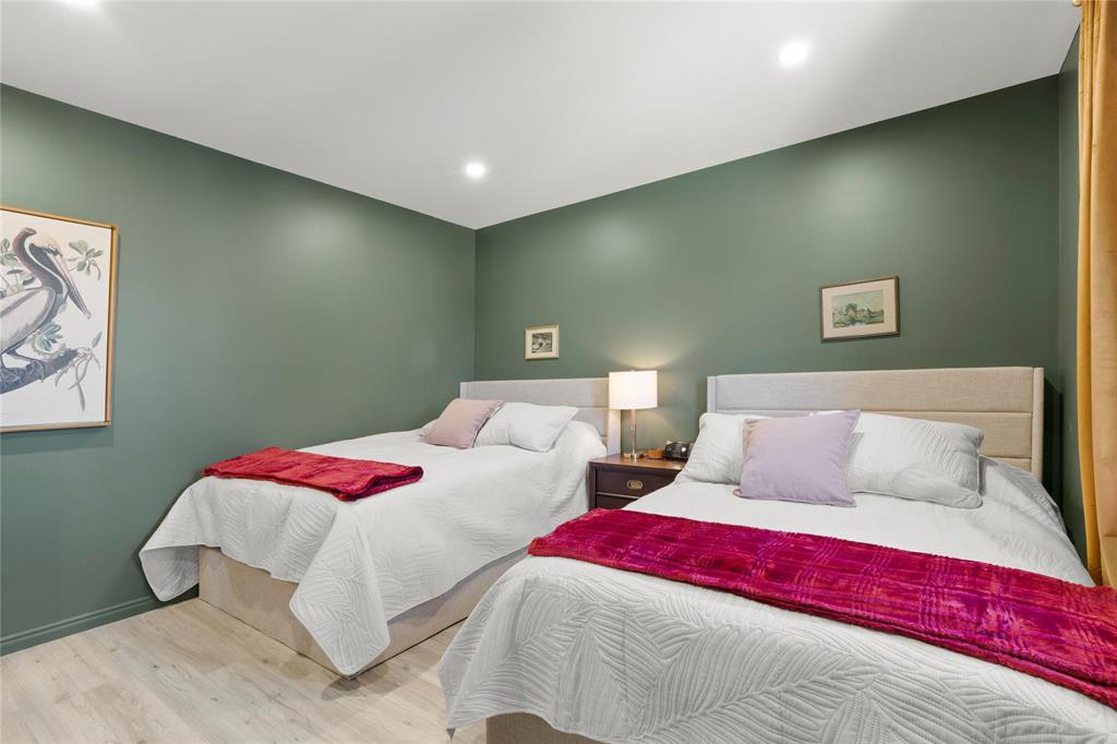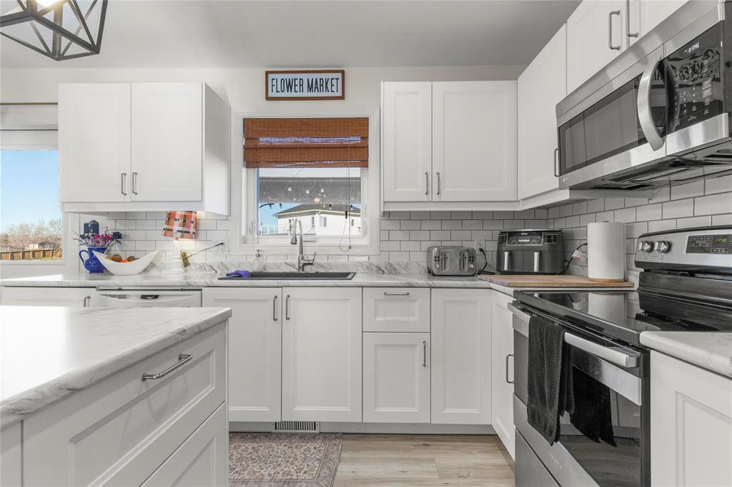 Step into this fantastic family home offering a total of 5 bedrooms and 2 bathrooms, perfectly designed for comfort and style. A spacious foyer welcomes you with ample closet space, leading into a bright white kitchen featuring a tiled backsplash and walk-in pantry. The open dining area offers easy access to the deck, while the inviting living room showcases potlights and a cozy electric fireplace. The main floor hosts a generous primary bedroom with walk-in closet, a modern 4 piece bathroom, and two additional bedrooms. The partially finished basement adds two more bedrooms, a second 4 piece bathroom, and a rec room ready for your personal finishing touches. Outside, enjoy a beautifully upgraded fenced backyard (2024) with a 2023 deck, pergola, and garden boxes—an ideal retreat for family living and outdoor entertaining.