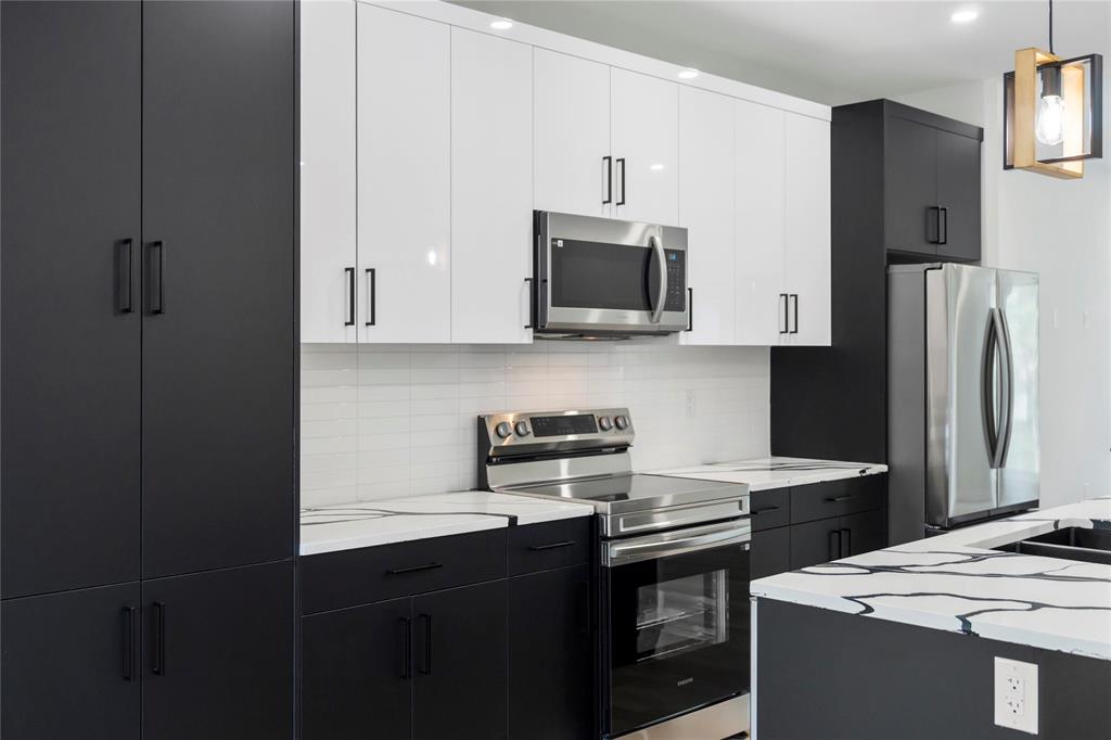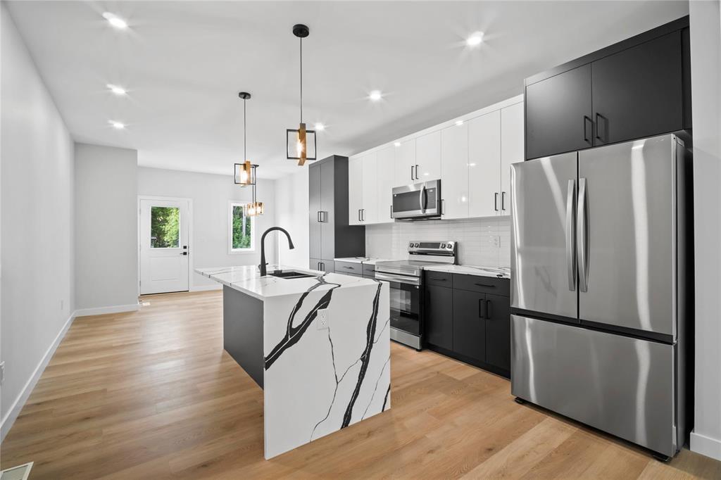 Ready to move in two story duplex, built by Galaxy Custom Homes, is located on a quiet street in the highly sought-after St. Vital neighbourhood. Thoughtfully designed and finished, it’s ideal for multi-generational living or investment. The main suite offers 1,497 sq ft across the main floor and basement, featuring 9' ceilings, luxury vinyl plank flooring, and an open-concept living space with dining area and a modern eat-in kitchen with custom cabinetry and quartz countertops. A 2-piece bath completes the main floor. Downstairs, the primary bedroom includes a walk-in closet and 4-piece ensuite, along with two more bedrooms, a 3-piece bath, and in-suite laundry. The 740 sq ft upper-level secondary suite features vaulted ceilings, plenty of natural light, an open living area, eat-in kitchen, two bedrooms, a 4-piece bath, and its own laundry. Each unit has a separate entrance, its own water meter, and central A/C. Outside you will also find a 20x22 Concrete parking pad! Covered under New Home Warranty. Estimated rental income: $2,200 (main unit) and $1700 (secondary unit). A fantastic opportunity—reach out today!