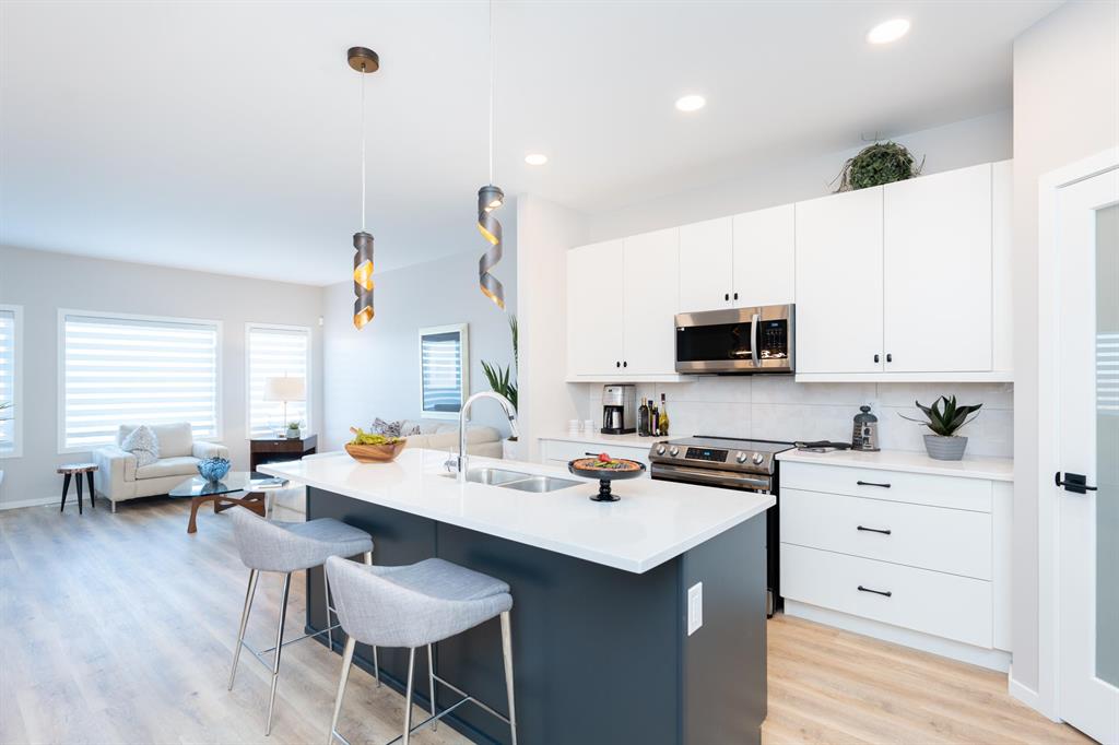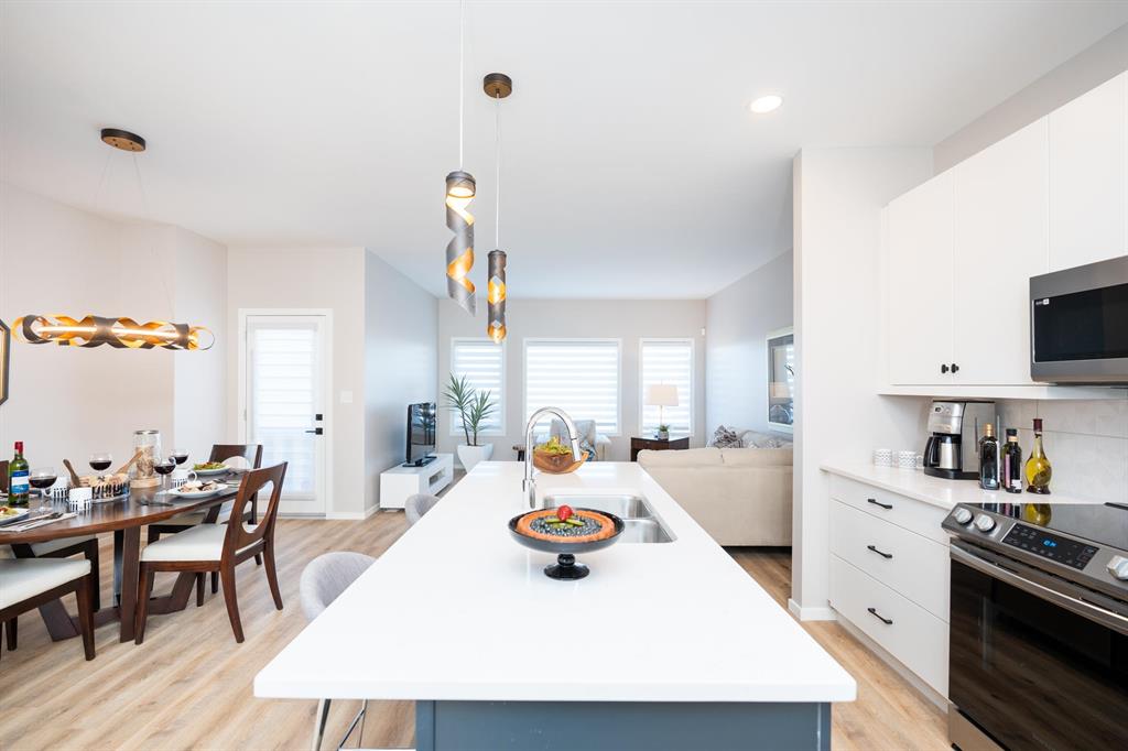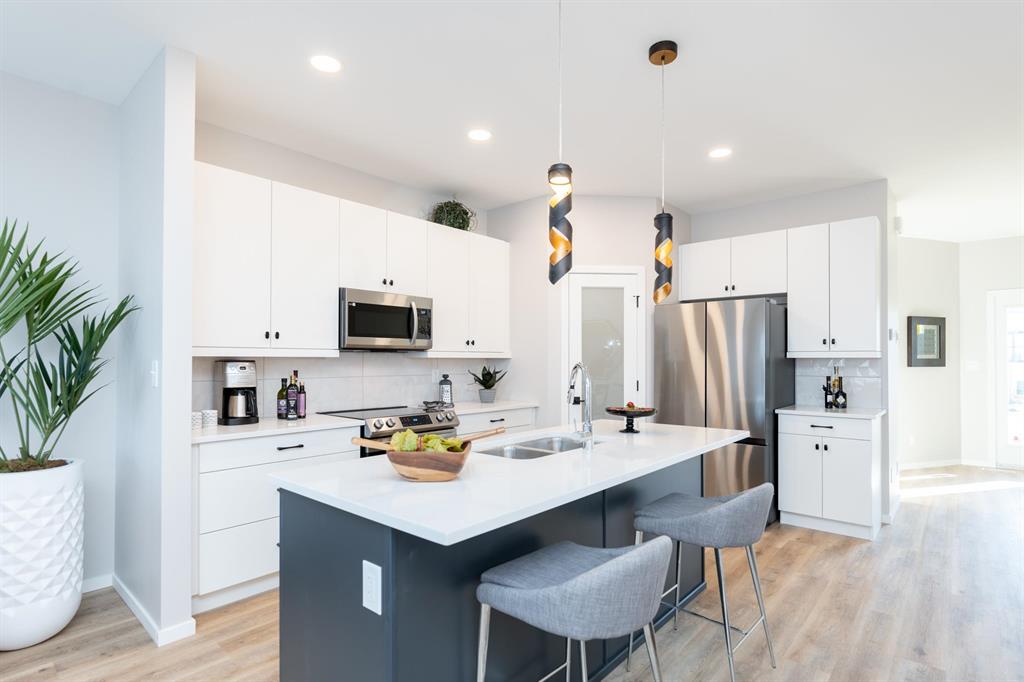 This 1,551 sq.ft. side-by-side design offers modern, functional living with a well-planned layout. The home features 3 bedrooms and 2.5 baths. Interior upgrades include LED disc lighting, 9' ceilings on the main floor, Luxury Vinyl Plank flooring throughout the main level, and upgraded carpet on the second floor (bedrooms, hallway, and stairs). The kitchen includes a large island, walk-in pantry, and dedicated dining area with garden door access. Modern Soho-style cabinetry (soft-close drawers & 41" upper cabinets in kitchen), SS OTR microwave hood-fan, pendant lighting over the island, and complete the interior finish package.