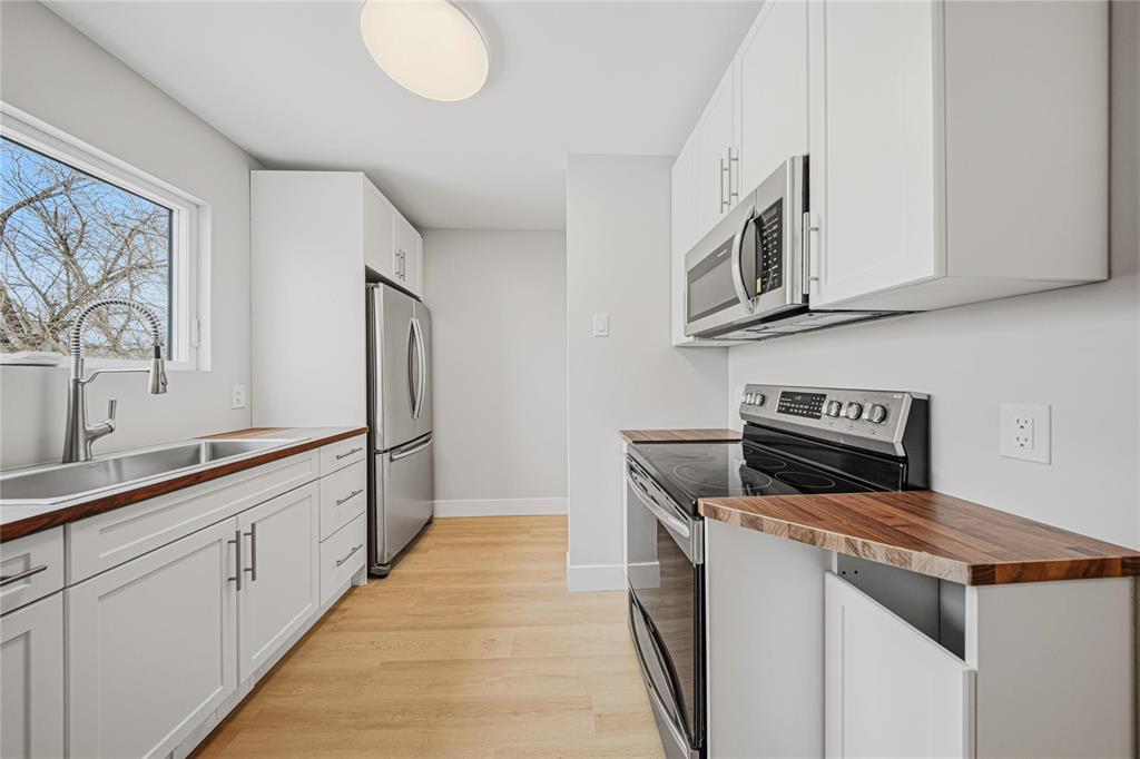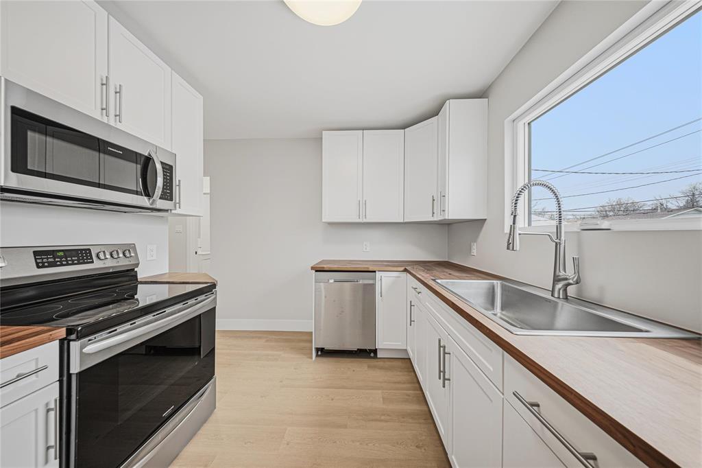 Showings now. Offers anytime! A rare find with this completely remodelled, move-in-ready turnkey home! Nestled in a mature-treed neighbourhood, offering the luxuries of new home living! The impressive list of 2025 renovations for this 2 bedroom bungalow include: Windows, doors, shingles, facia, soffits, eaves & troughs, front stairs and railing! Fresh exterior paint and handsome brick detailing make this home pop! New kitchen features timeless white cabinets and includes stainless: Dishwasher, fridge, stove, microwave/hood fan. Vinyl plank floors throughout! Berkley doors, baseboards & trim, paint 2025. A spacious, open-concept living & dining area boasts beautiful bay-window-style feature wall, offering versatility and a perfect blank canvas for your ideal furniture layout! Remodelled bathroom with subway tiled walls. Full basement has high ceilings and updated mechanical systems including: high-efficient furnace, updated ducts, wiring and plumbing! 27 x 100 foot lot provides room for a nice yard and parking for 3 vehicles on stone parking pad. Settle in comfortably and start living your best life! Excellent investment to call home!