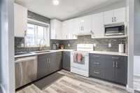 Welcome to 22 Skrypnyk Crescent. This beautifully renovated 4-level split in prime Maples location. Bright, modern home features an open-concept main floor with updated flooring and lighting, along with a gorgeous kitchen complete with quartz counters, tile backsplash, and luxury appliances. The living and dining areas offer excellent space for everyday family life and entertaining. The upper level includes 3 bedrooms, including a generously sized primary bedroom, along with a fully remodelled bathroom. The lower level offers a large family room space for watching the next Jets game, along with an updated additional bedroom and a remodelled bathroom. The basement level opens into a large rec area perfect for a home gym, media room, or relaxed entertainment space. Renovations throughout include new lighting, fixtures, flooring, refreshed bathrooms, and more. With a large fenced yard, ideal for gatherings, kids, and pets. Close to schools, parks, shopping, and transit. A move-in-ready home in a fantastic Maples neighbourhood!