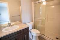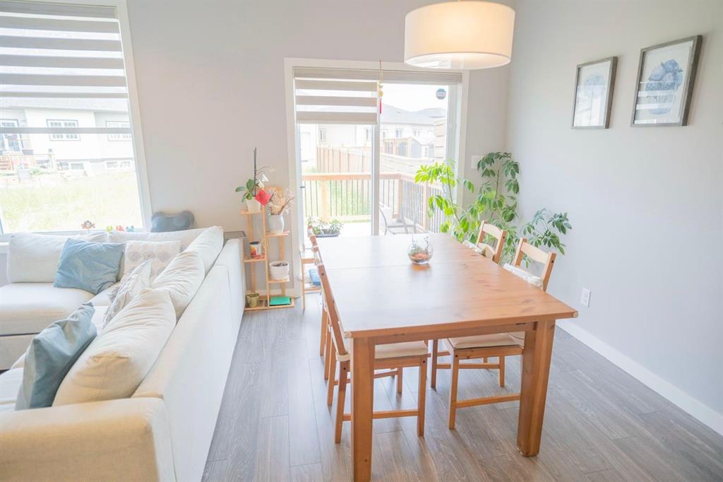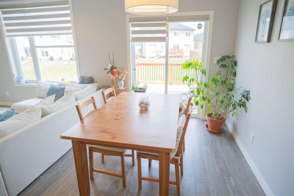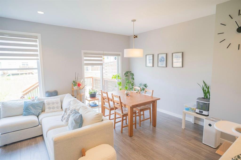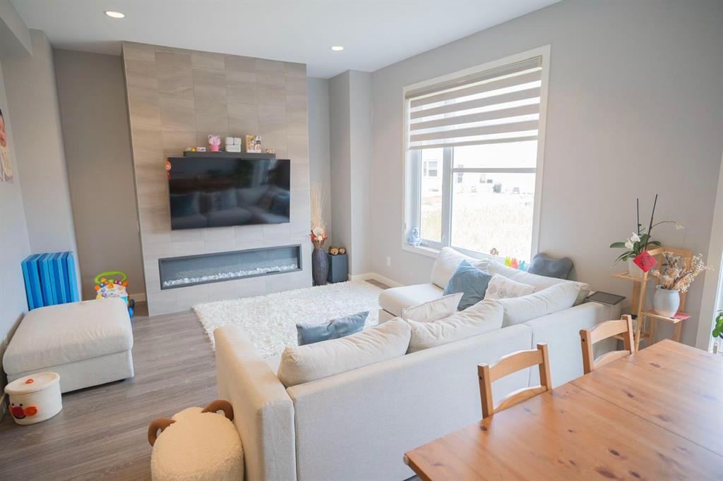 mounted TV, creating a warm and contemporary ambiance. Large windows provide plenty of natural light throughout the home, enhancing the bright and airy atmosphere. Upstairs, you’ll find well-sized bedrooms and a comfortable layout for daily living. The unfinished basement provides excellent storage space and future development potential to suit your needs. Additional features include a single attached garage, low- maintenance flooring, and a backyard ready for landscaping or gardening. Close to parks, schools, shopping, and all amenities, this home blends comfort, style, and value in a growing community. Don’t miss this great opportunity!