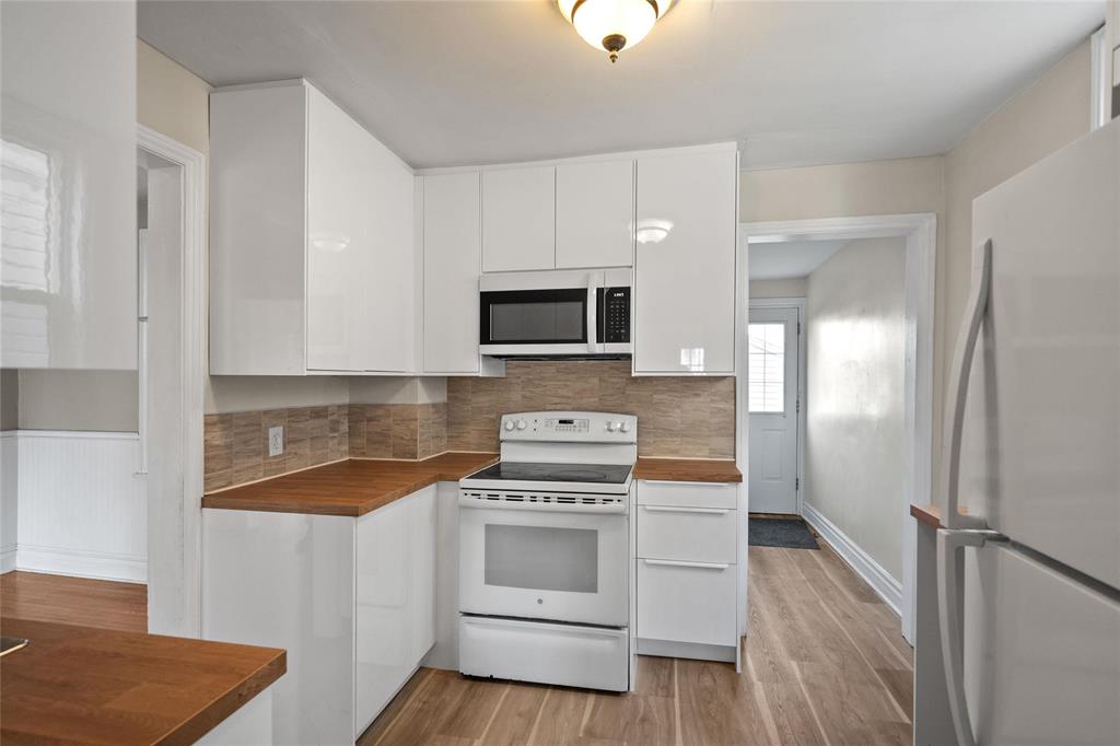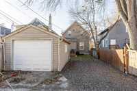 The lower level offers a partially finished basement with a second full bathroom, a laundry area with washer and dryer, and plenty of storage space. Features include central air conditioning, central vacuum, and a high efficient furnace. Recent updates include new shingles, flooring, and kitchen cabinets. The fenced backyard provides a safe and private space, along with a single detached garage and rear parking.