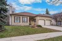 Showings start Nov 19, Open House Fri 4:00-5:00, Sat, Nov 22, 2-4, Sun Nov 23, 1-3 pm. Offers Nov 25. Beautifully maintained 1,393 sq. ft. bungalow offering a bright, open-concept living and dining room featuring a cozy gas fireplace and a French door leading to the spacious eat-in kitchen. From here, step into the inviting 3-season sunroom overlooking the large fenced backyard with deck—perfect for relaxing or entertaining. This home includes 3 bedrooms, with a generous primary suite featuring an updated 3-piece ensuite and walk-in closet. Enjoy updated windows, no stippled ceilings, and well-kept carpeting throughout. The fully finished basement offers a huge rec room, 3-piece bathroom, 2 extra rooms for office or hobby use, and 200-amp electrical service. A double attached garage with double doors, newer washer and dryer, and a wide 60x148 ft lot complete this wonderful property—offering space, comfort, and great value. Quick poss available. Close to Bunn’s Creek path.