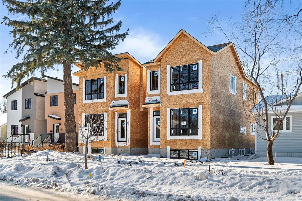 Brand New Two story Duplex In North River Heights, Designed for comfort and functionality, this property is perfect for Investors or for those who want to Live in one unit and Rent out the other. The main unit spans 1528 sqft over the main floor and basement, offering 9-foot ceilings, stylish luxury vinyl plank flooring, and bright, open-concept layout. The main level features a spacious dining area, modern eat-in kitchen with quartz countertops and custom cabinetry, and a convenient 2-piece bathroom. The lower level includes a large Master bedroom with a walk-in closet and 4-piece ensuite, two additional bedrooms, a 3-piece bathroom, and in-suite laundry. The secondary suite located on the second floor offers 805 sq ft of well-lit living space, open-concept living area, eat-in kitchen, two bedrooms, a 4-piece bath, Balcony and laundry. Each unit has its own entrance, water meter, and hydrometer. 5 yr New Home Warranty, MAIN UNIT Entertainment Wall In living room and River rock landscaping included Estimated Rental potential of $2,350 for the main unit and $1,800 for the secondary suite. Interior photos of similar home Built by Builder in July 2025 on Prince Rupert ave and Nov 2025 on 198 Lockwood st.