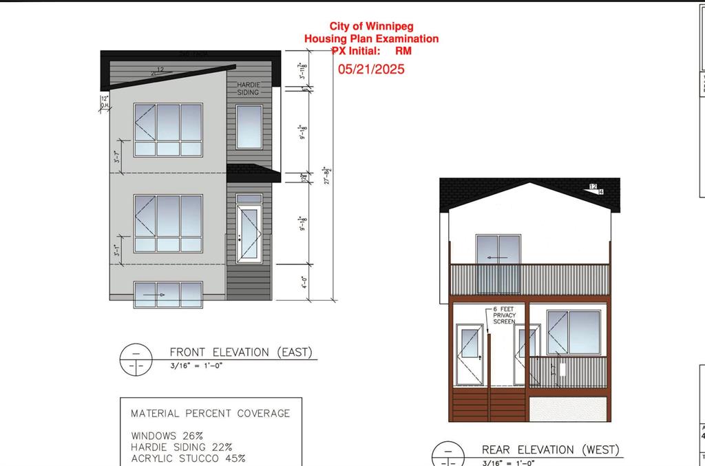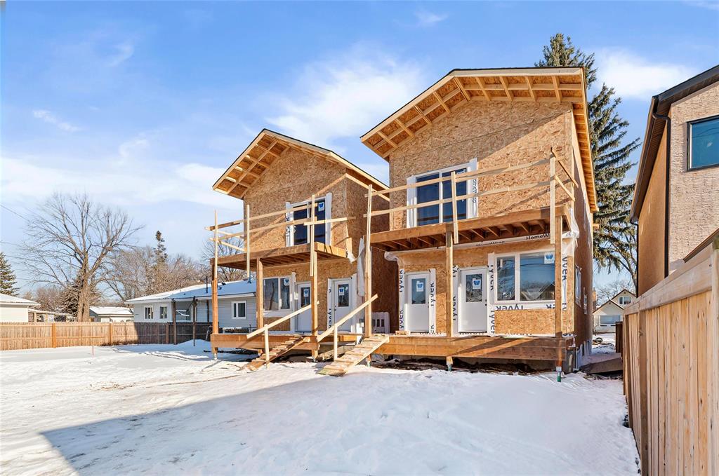 Brand New Two story Duplex In North River Heights, Designed for comfort and functionality, this property is perfect for Investors or for those who want to Live in one unit and Rent out the other. The main unit spans 1528 sqft over the main floor and basement, offering 9-foot ceilings, stylish luxury vinyl plank flooring, and bright, open-concept layout. The main level features a spacious dining area, modern eat-in kitchen with quartz countertops and custom cabinetry, and a convenient 2-piece bathroom. The lower level includes a large Master bedroom with a walk-in closet and 4-piece ensuite, two additional bedrooms, a 3-piece bathroom, and in-suite laundry. The secondary suite located on the second floor offers 805 sq ft of well-lit living space, open-concept living area, eat-in kitchen, two bedrooms, a 4-piece bath, Balcony and laundry. Each unit has its own entrance, water meter, and hydrometer. 5 yr New Home Warranty, MAIN UNIT Entertainment Wall In living room and River rock landscaping included Estimated Rental potential of $2,350 for the main unit and $1,800 for the secondary suite. Interior photos of similar home Built by Builder in July 2025 on Prince Rupert ave and Nov 2025 on 198 Lockwood st.