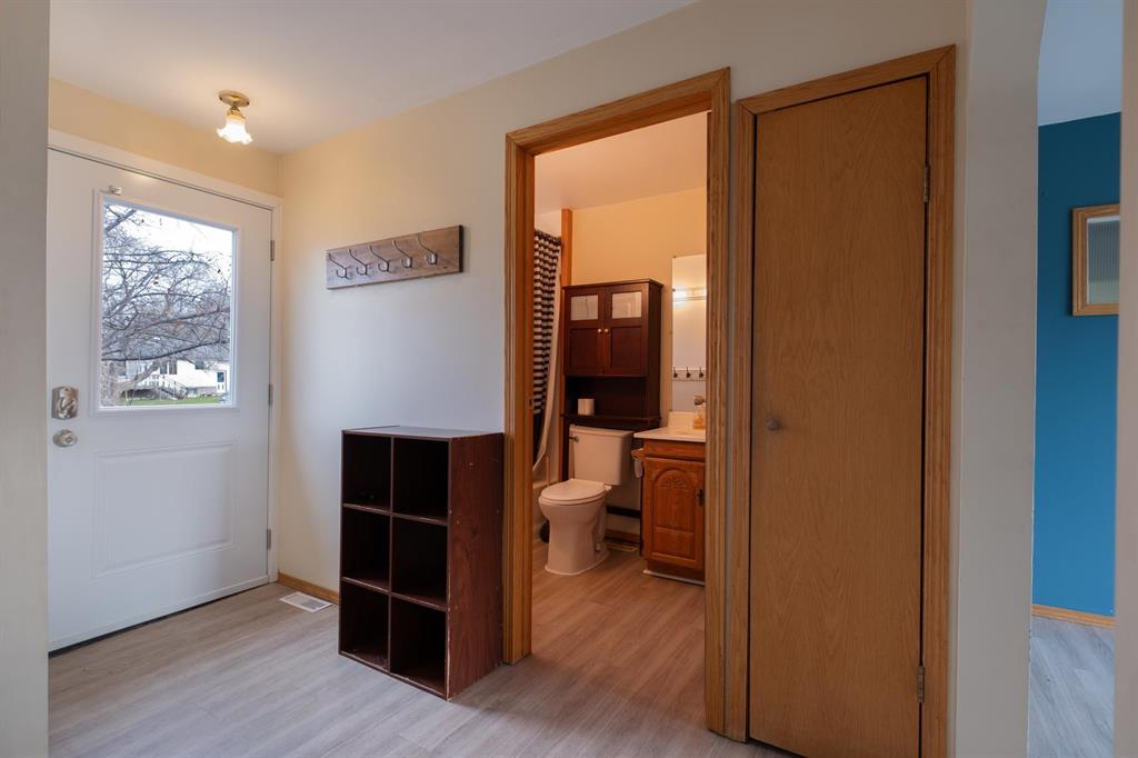 Great starter home or perfect for an investor rental property. Home features big yard that is fenced in. Main floor living, dining, kitchen with 4 pc bath. Upper level features 2 bedrooms. Lover level is partially finished. Attached single car garage with remote door opener. High Efficiency furnace, newer hot water tank and some newer windows. Central air conditioning, sump pump and water softener. Shingles were redone in 2013, stucco parging in 2013, sump pump in 2020, furnace in 2014, water pressure tank and softener in 2014.