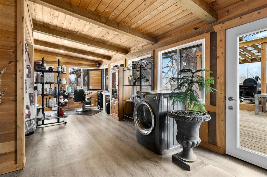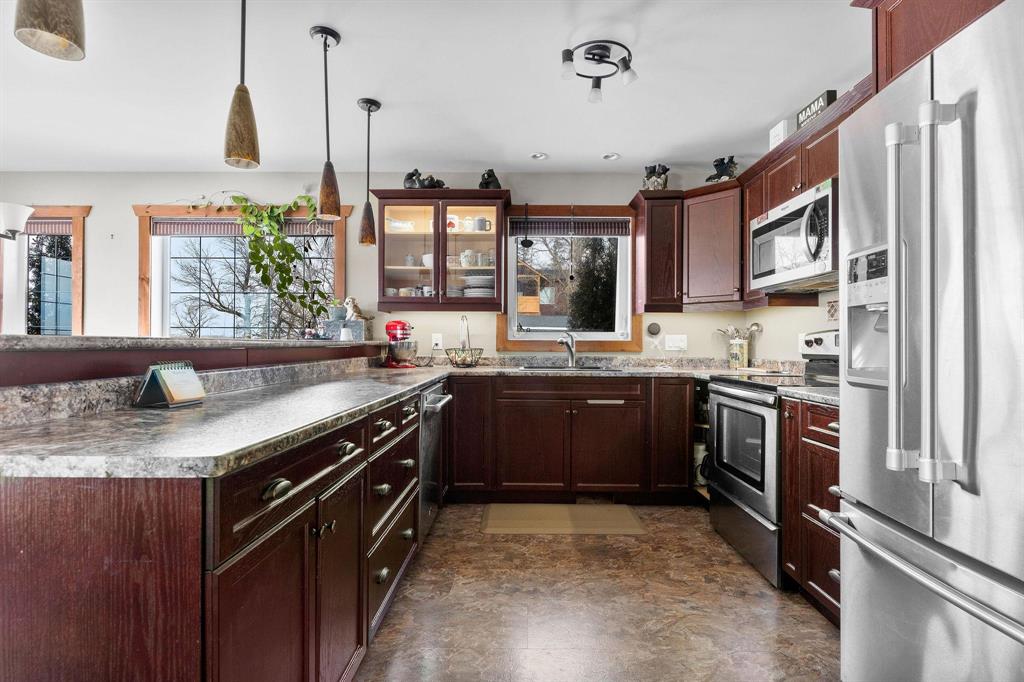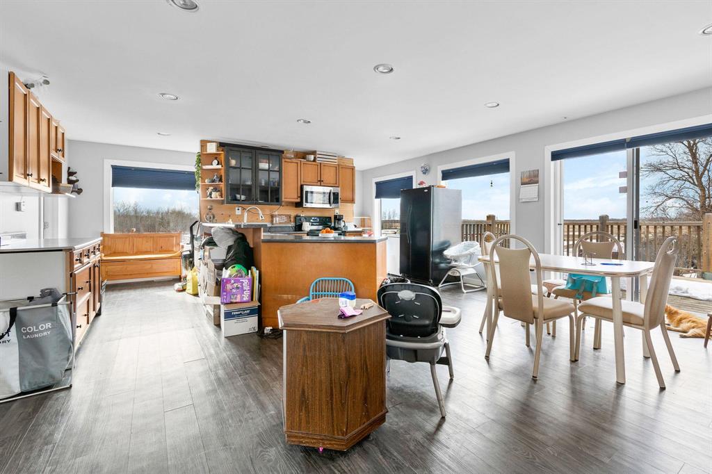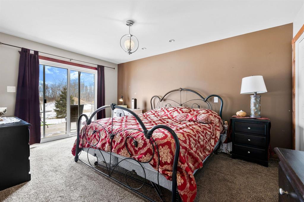 This remarkable 39-acre country estate offers an unparalleled blend of privacy, versatility, and high-quality living. With over 5,100 sq. ft. of total living space across multiple residences, this property is ideal for multi-generational living, rental income, or hosting guests. The main 4-bedroom home is designed for comfort and space, highlighted by a stunning 700+ sq. ft. primary bedroom—your own private retreat with a cozy living area, ensuite, and wet bar. The lower level features a well-appointed suite, perfect for extended family or teens. A standout feature is the 40’x40’ heated shop, equipped with in-floor heat via a gas boiler, offering endless possibilities for work or storage. Above the shop, a spacious 1,200 sq. ft. 2-bedroom suite provides independent living space with modern finishes. A secondary 1,030 sq. ft. 2-bedroom home adds further flexibility, whether as a rental, guesthouse, or caretaker’s residence. Outdoor amenities enhance the property’s appeal, featuring a picturesque swimming pond and 16 acres of pasture land, all set within a mix of open and treed land. This is a rare opportunity to own a fully equipped, private country estate with endless possibilities.