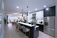 The Oakridge is a stunning two-story residence with 1,595 square feet of contemporary living area. This house is ideal for families looking for both flair and functionality because it has three roomy bedrooms, two bathrooms, and a handy powder room. A cheerful and inviting ambiance is created by the abundance of sunlight streaming through the windows. For increased stability, this house has an engineered piled foundation with engineered joists. Nine-foot ceilings, a kitchen with an island and pantry, LED internal lighting, Decora switches and plugs, and flat painted ceilings are standard elements that give the space a contemporary and welcoming feel. Options for customization, such as the addition of a mudroom, second-floor laundry, or bonus room, Spindle railing further improve the house. More adaptability and functionality are made possible by these improvements, which make this stunning area ideal for a variety of lifestyles.