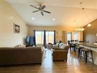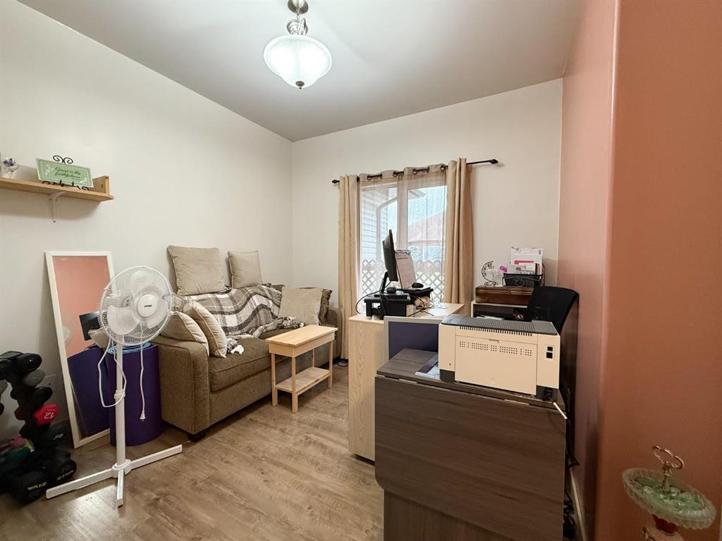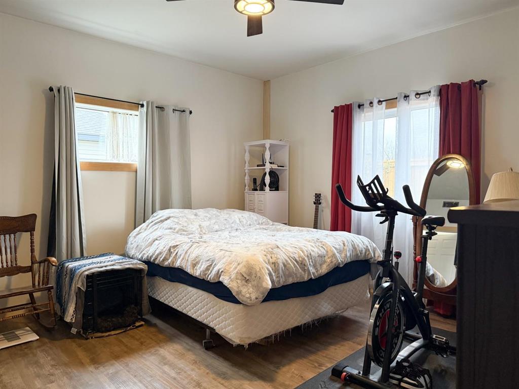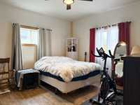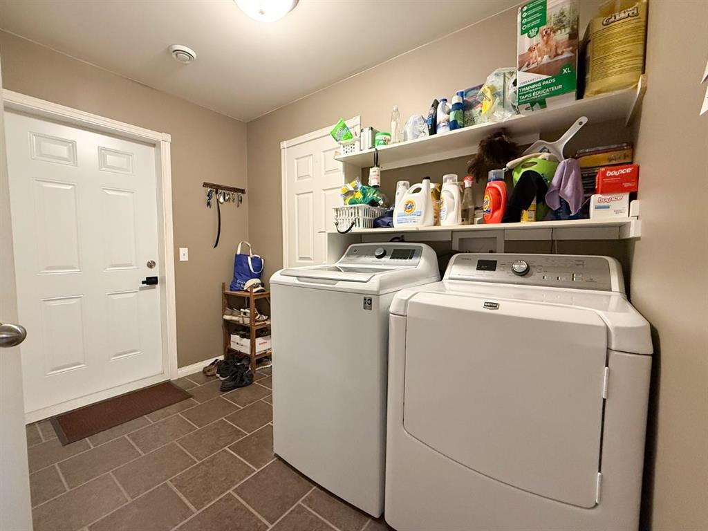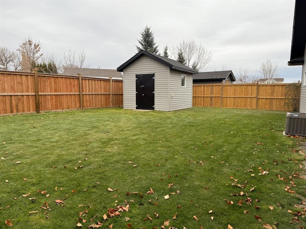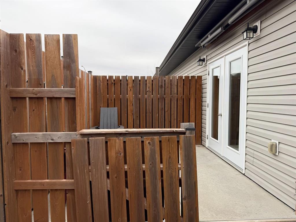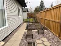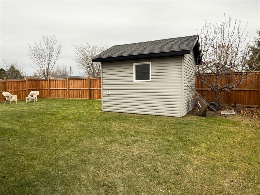 Check out this beautiful one-level home with a double attached garage, floor heat throughout, no steps, and wide doors to allow wheelchair access! The fully fenced yard offers privacy, gardening space, a small shed with electricity for tinkering, and a concrete patio with a retractable awning. The home features an L-shaped kitchen with a corner pantry and island overlooking the dining and living area, all with vaulted ceilings. The primary bedroom has a 3-pc ensuite, which leads to a roomy walk-in closet. Other features include a 2nd bedroom to the front, a 4-pc bath, and a laundry/mudroom leading to the garage. Enjoy the natural light through the large window on the south, with access to the back yard patio through the garden doors off the dining area. Updates include a new concrete patio (2018), floor heat thermostat & pump (2020), toilets (2022), retractable patio awning (2022), washer (2022), storm/screen doors (2023), lifetime stainless steel water heater (2024), fence (2024), kitchen & bathroom faucets (2025). Take advantage of this affordable property today!