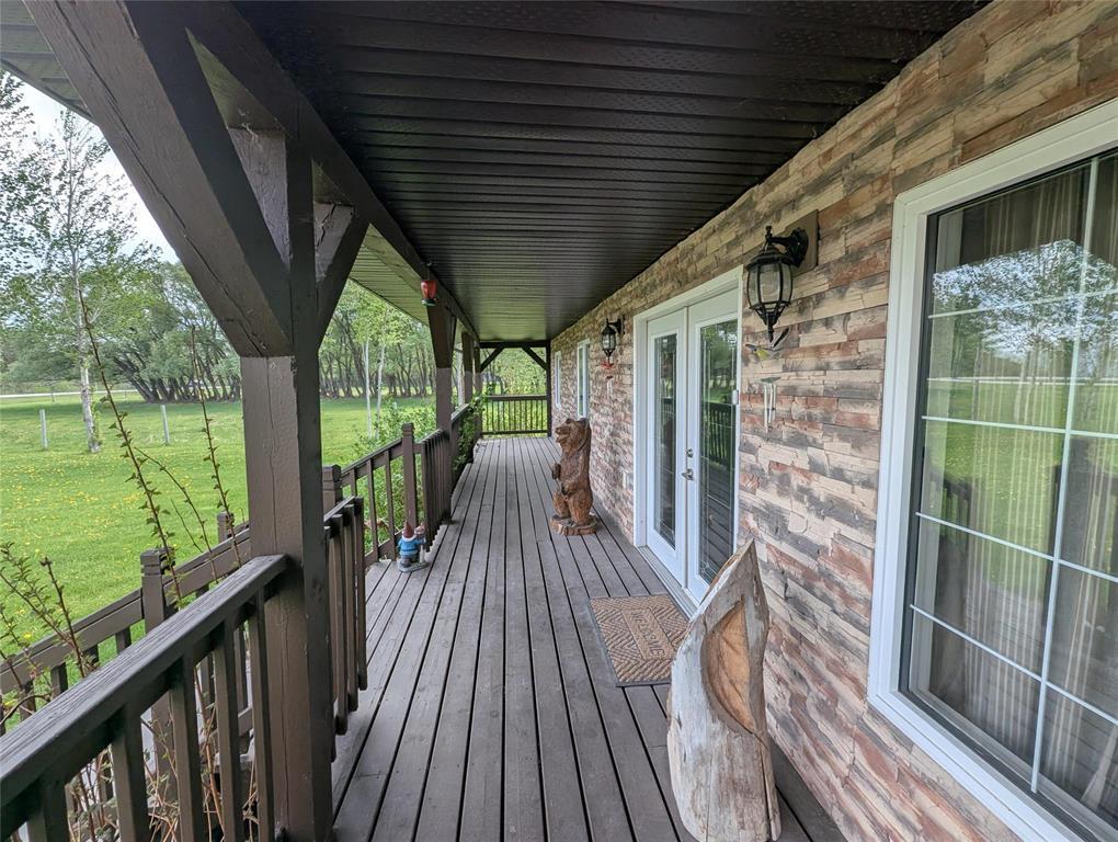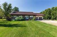 Pavement all the way to this peaceful 5 acre property with a spacious home, a 30' x40' shop, and large garden area! Only 20 minutes from Steinbach, this country gem offers the space and privacy you’ve been looking for! The home impresses with an open-concept layout, perfect for everyday living and enough room for gathering with family or friends. The living room features a large picture window and sleek electric fireplace. The kitchen features two-tone custom Alderwood cabinetry, granite countertops, high-end gas stove, stainless steel appliances, tile backsplash and spacious island. The oversized dining area features a sliding barn door that opens into a warm, inviting family room with vaulted wood ceilings and a 2nd fireplace. From there, step into the cozy 4-season sunroom with rich wood paneling and access to the covered back deck. The primary suite offers a walk-in closet and ensuite. Two more bedrooms, a 4-piece bath, and a large mudroom with laundry and storage complete the floor plan. Need more space? With an extra wall, this home could easily convert to 4 or even 5 bedrooms! Location and features are ideal for home business or a growing family - or both!