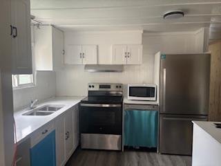 Newly renovated 3-bdrm 1064 sq. ft. mobile home with open concept layout that connects the lvgrm, dnrm, and kitchen. New hwt and appliances. Renovations done in 2024: new bath vanity, kitchen quart. counter, Korean stone on cabinet, laminate all over, pine paneling on lvgrm ceiling, roof shingles, wood siding, facia board and drip flushing. Lot fee is $278.50 per month and covers water, sewer, garbage, and recycling. Septic tank is pumped 2x/mo, private water system. Grocery store and ga station nearby!