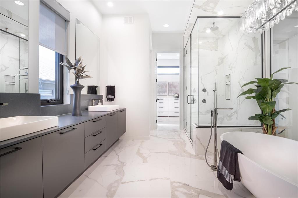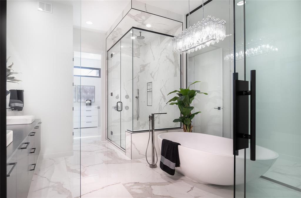 main flr ceilings & expansive windows. This architectural gem features a thoughtfully designed layout, w/ the