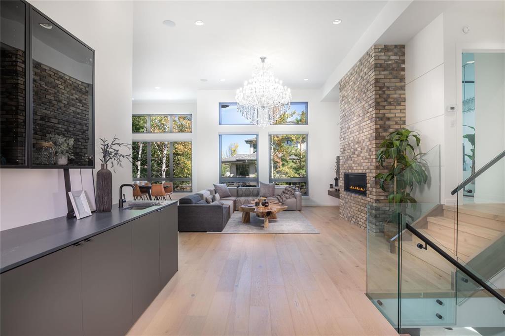 potential pool oasis. The lower lvl w/ 12’ ceilings, massive windows, & a wet bar, creating an inviting space