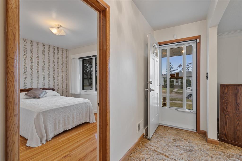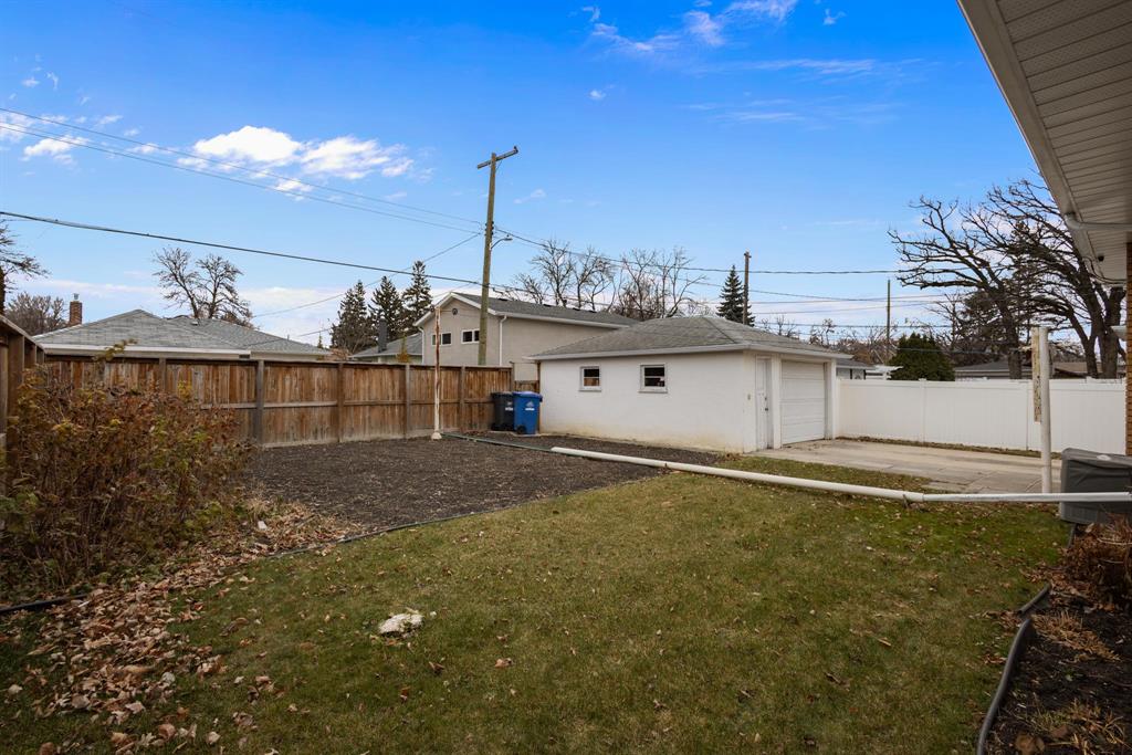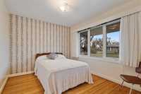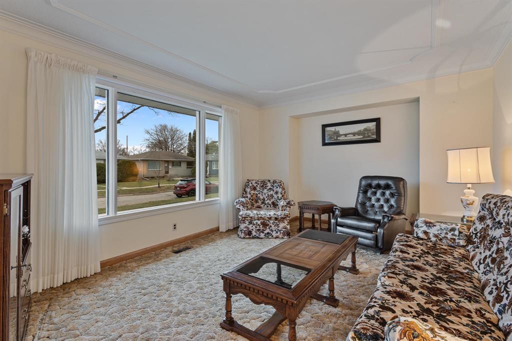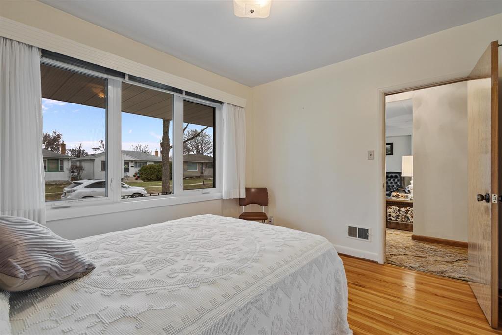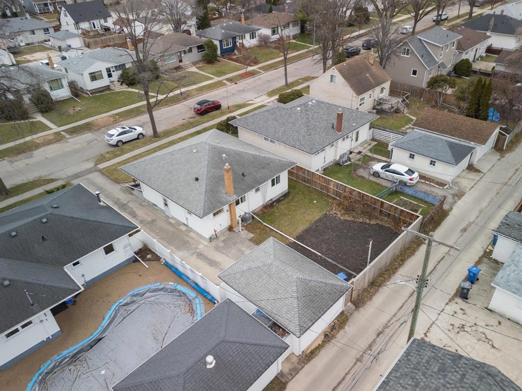 Showings start Nov 26, Open House Sat 2-4. Offers Dec 2. Beautiful bungalow located in a desirable neighbourhood showcases crown molding in the living room, offering timeless features and solid value. The main floor includes hardwood floors—exposed in 2 bedrooms + preserved under carpeting in the living room—plus the benefit of no stippled ceilings for a clean, modern look. Enjoy a spacious eat-in kitchen and newer windows in most rooms that bring in plenty of natural light. The primary bedroom offers a generous closet, and one of the additional bedrooms features a charming cedar closet. The lower level expands your living space with a huge rec room, a convenient 2-piece bath, and abundant storage. Outside, the home includes a single detached garage and a nice sized yard with large garden area + raspberry patch perfect for relaxing or play. Located just steps from a children’s playground, this property combines comfort, convenience, and great neighbourhood appeal. Carbon monoxide alarm hardwired in. Standup freezer in bsmt incl. Close to schools with French Emersion, public transportation, shopping, Rossmere Golf Course, and more. Quick poss available.